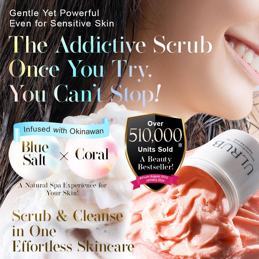 • Experience the power to address dark spots, rough texture, and enhance moisture retention. Our scrub features natural coral ethically harvested from the Okinawan seabed. The coral's unique microporous structure effectively absorbs impurities and debris. This special characteristic allows ULRUB to maintain its gentle texture while providing thorough exfoliation and skin care. *Note: All coral ingredients are sourced through legally approved harvesting methods.
