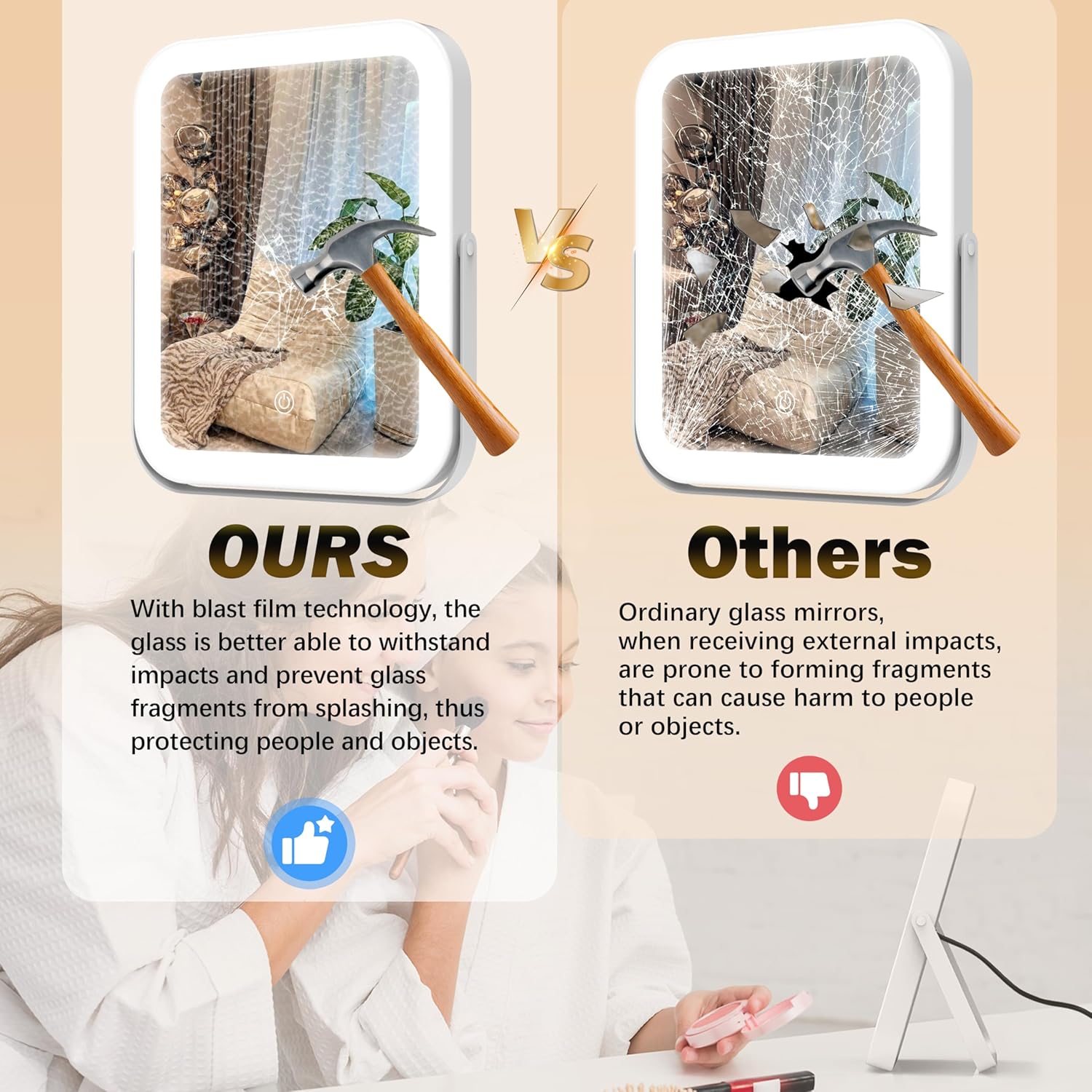 • ✈️【Compact. Lightweight. Ready to Go. 】 At just 8" x 10", this mirror is the perfect size for travel or your daily routine. Whether you're touching up before a meeting or freshening up on vacation, it fits easily in your bag and brightens your beauty routine—wherever life takes you.