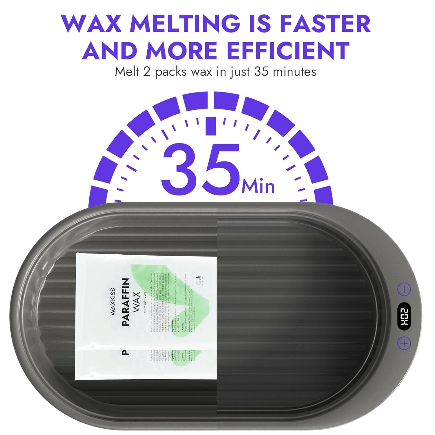 • Auto Constant Temperature: The Paraffin Machine offers two heating modes. In the reservation heating mode, when the wax is melted, it will automatically cool down to 53°C and can be maintained at this constant temperature for up to 99 hours. Schedule paraffin bath in advance. You can schedule the time to enjoy the paraffin wax bath more conveniently.