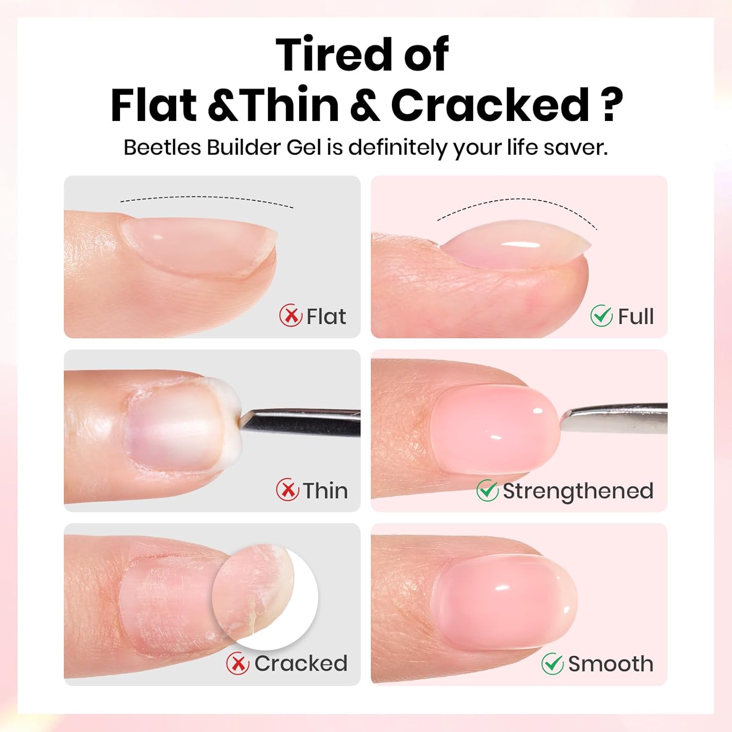 • Hema-free & Safe Formula : Beetles upgraded HEMA-free, gentle formula Builder Nail gel & Gel Top and Base Coat set formulated to minimize irritation, making it ideal for users with sensitive skin or allergy-prone individuals. It does not contain irritating ingredients or adhesives that cause nail damage, and provides flawless pretty nail results.
