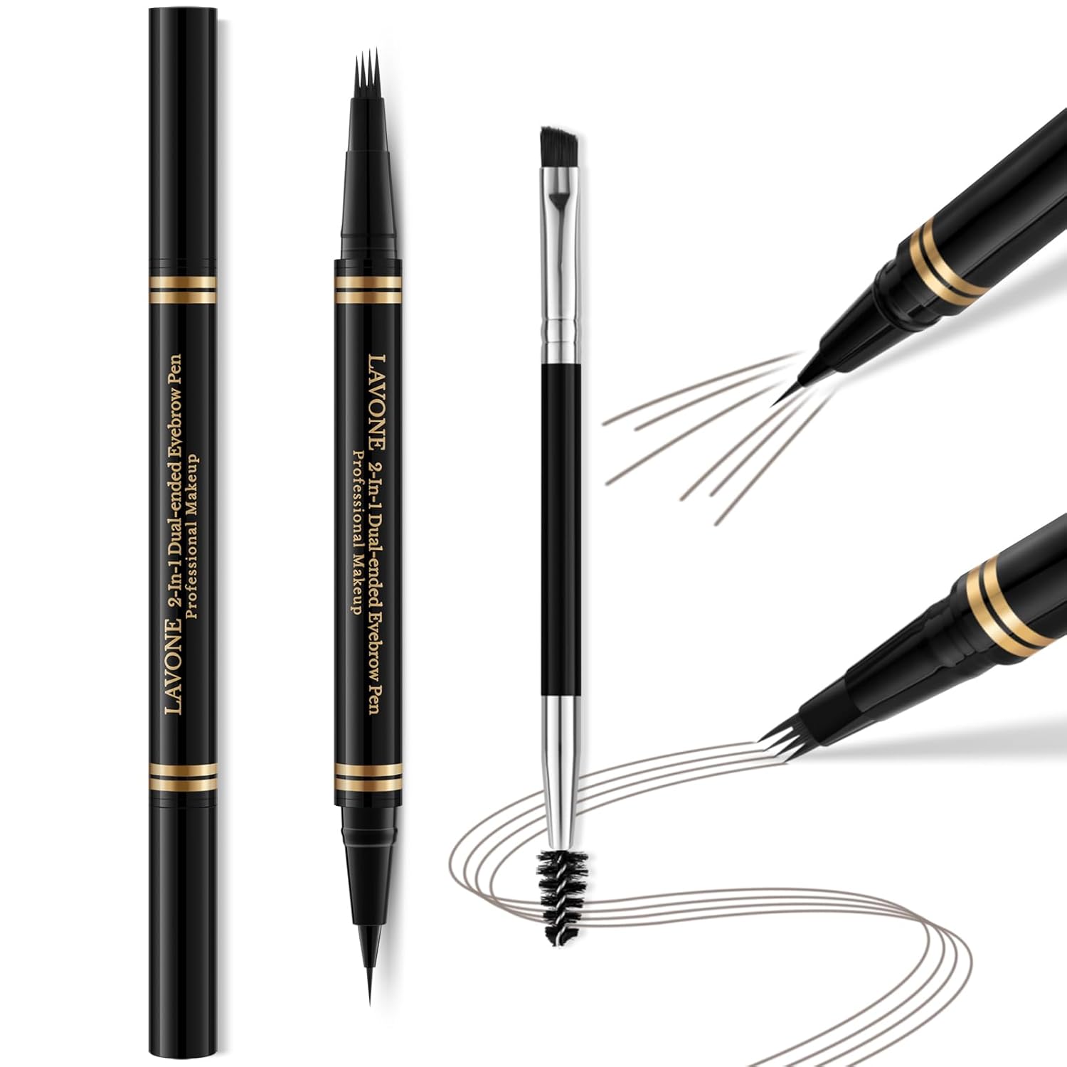 • 【2-in-1 Eyebrow Pen】: LAVONE innovative 2-in-1 dual-ended eyebrow pencil with 4 tip microblading eyebrow pen fill and blend color into eyebrows,draw 3D natural real hair, and ultra-precise pen makes realistic hair-like strokes & fill in sparse areas. It glides on easily and smooth to build natural looking, flawless, symmetrical and fuller brows with up to 24HR wear for brows. It’s long-lasting, smudge-proof, and waterproof.