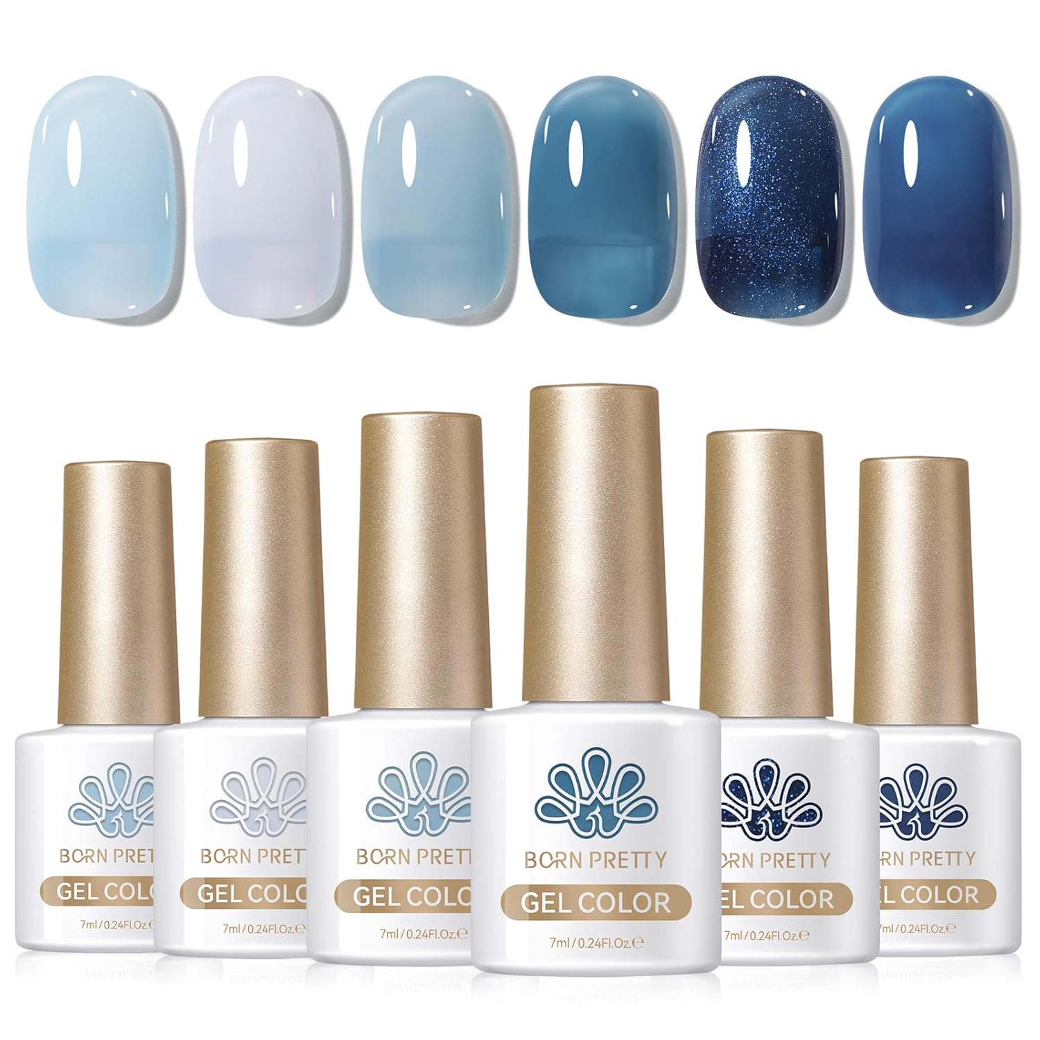 BORN PRETTY Jelly Blue Gel Nail Polish Set 6 Colors Translucent Light Blue Baby Blue Royal Blue Reflective Glitter Blue Nail Gel Kit Soak Off Nail Art Manicure Design Home Salon Holiday Gift