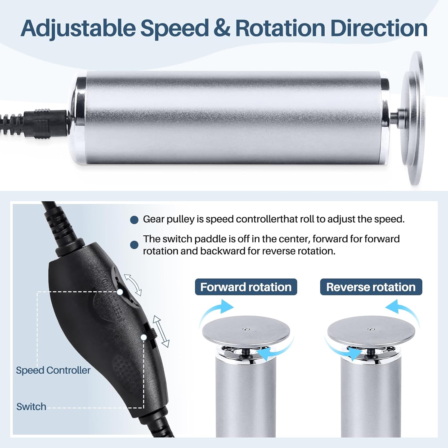 • 【Electric Foot File Remover Callus】360-Degree Rotation Professional-grade electric foot care tool with Adjustable speed and sanding rotation direction of dead skin and calluses, suitable for both right and left-handed use.delivering salon-level pedicure results at home/Salon/Spa Use.