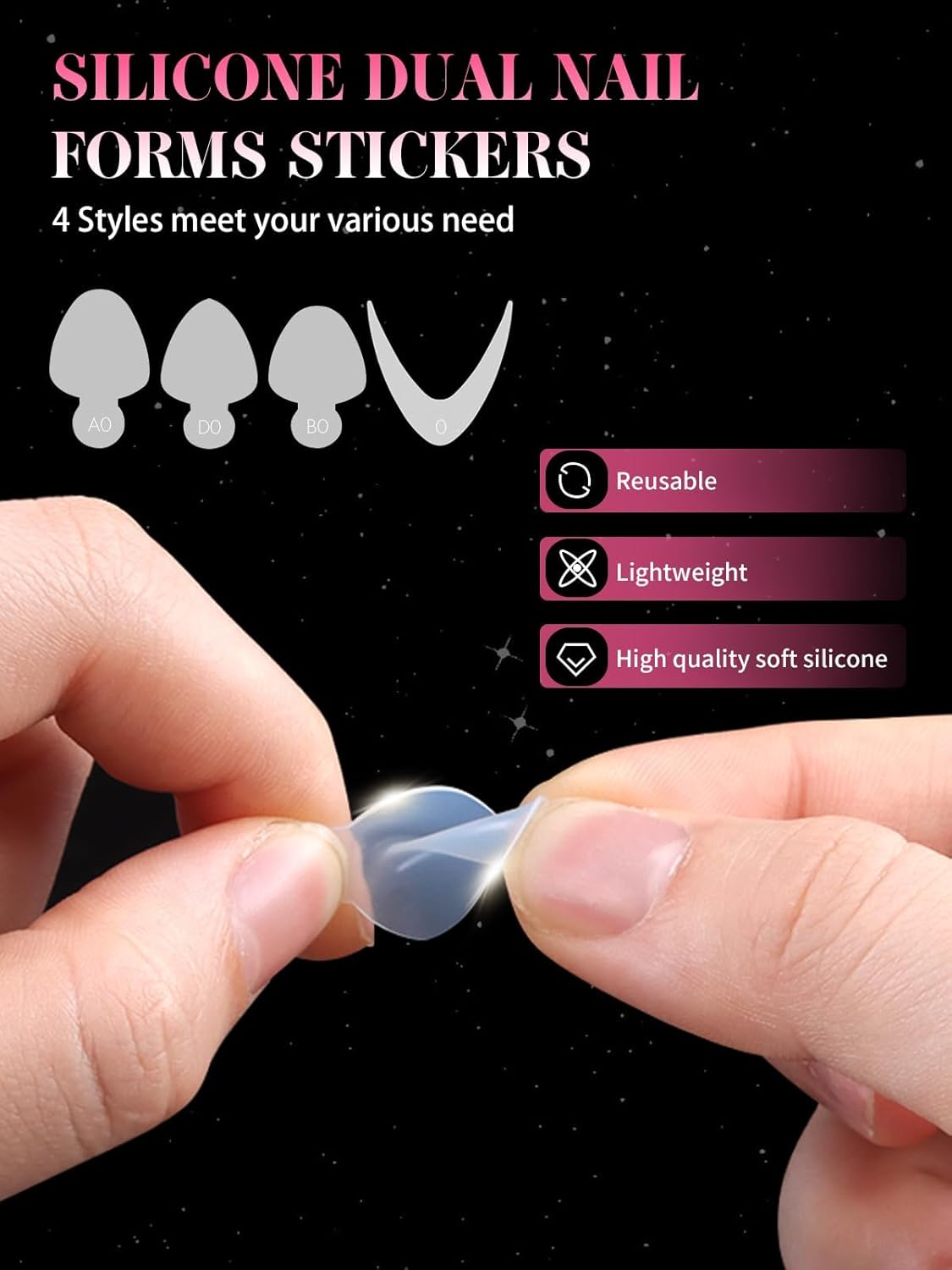 • 【4 Shapes with 12 Sizes】Both dual nail extension molds tips and French dual sticker silicone pads come in 8 style shapes and 12 sizes, each is engraved with numbers "0-11" for easy to recognize,which is convenient for you to design the nail length you want. And each size of long nail tips is separated by a small grid, a total of 12 grids, so they're easy and convenient to choose the suitable size to meet your nail's need