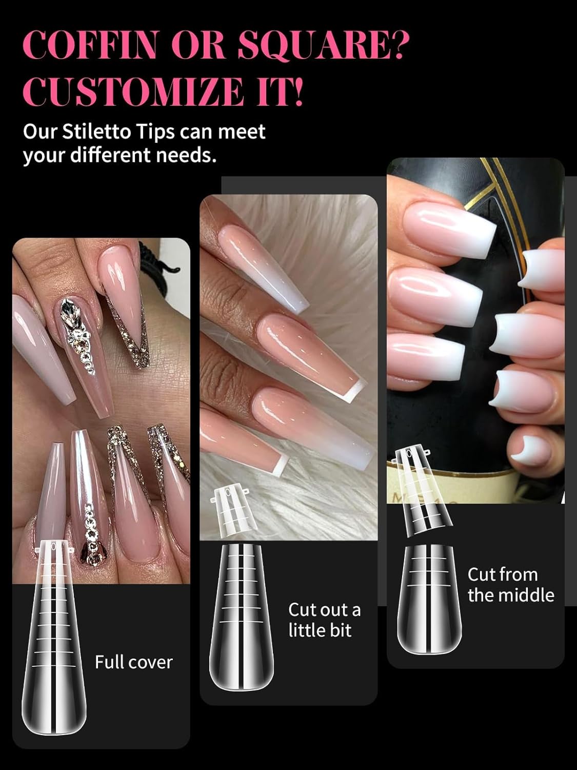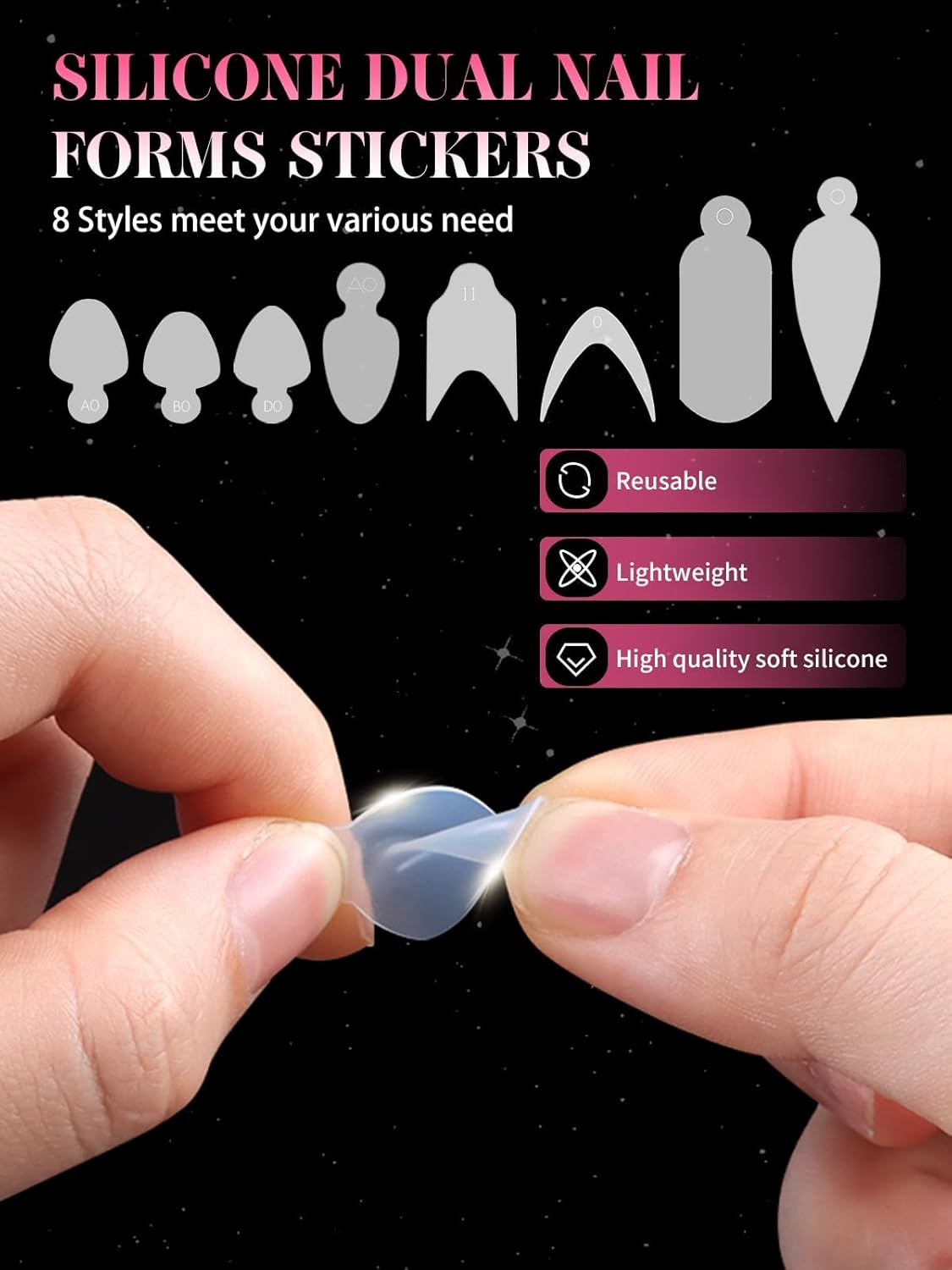 • 【12 Shapes with 12 Sizes】Both dual nail extension molds tips and French dual sticker silicone pads come in 8 style shapes and 12 sizes, each is engraved with numbers "0-11" for easy to recognize,which is convenient for you to design the nail length you want. And each size of long nail tips is separated by a small grid, a total of 12 grids, so they're easy and convenient to choose the suitable size to meet your nail's need
