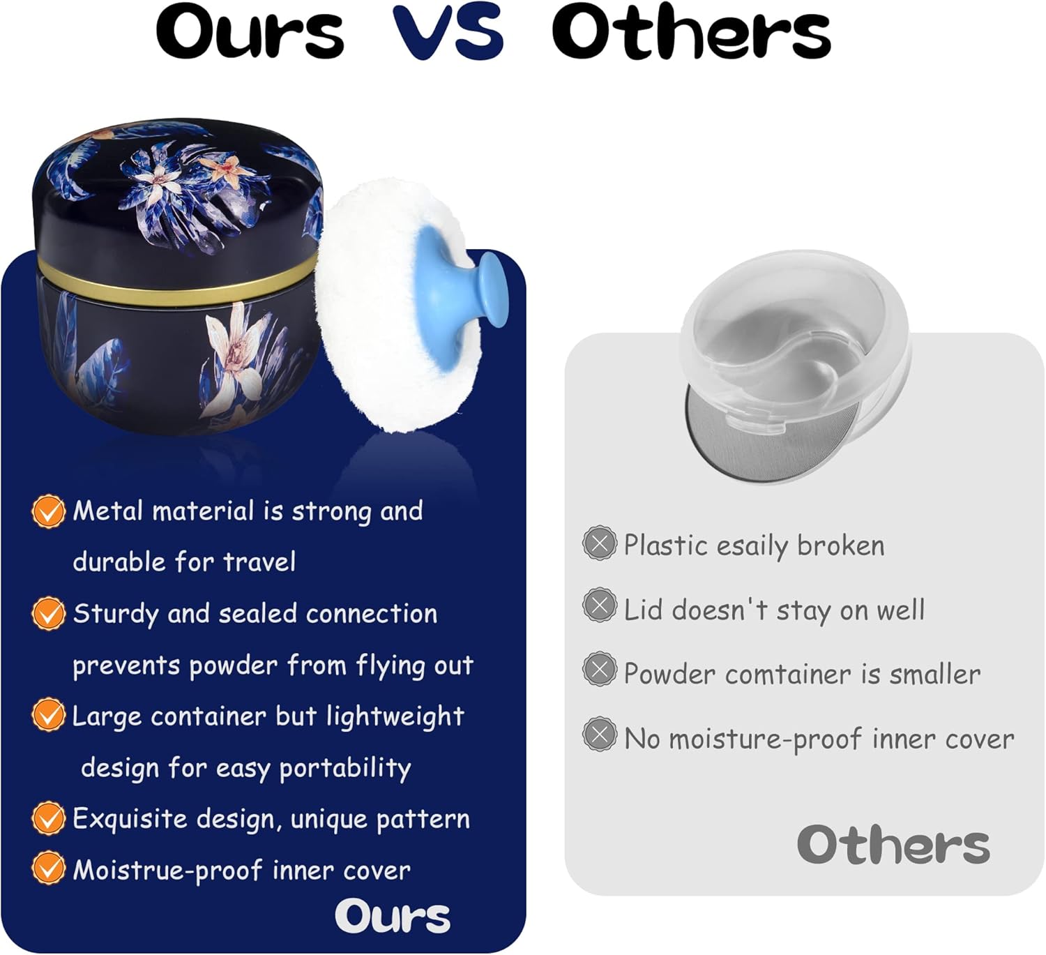 WEMEGA Body Powder Case with Powder Puff Powder Container Tea Box for Baby and Women Powder Puff and Powder Case for Travel (Midnight1)
