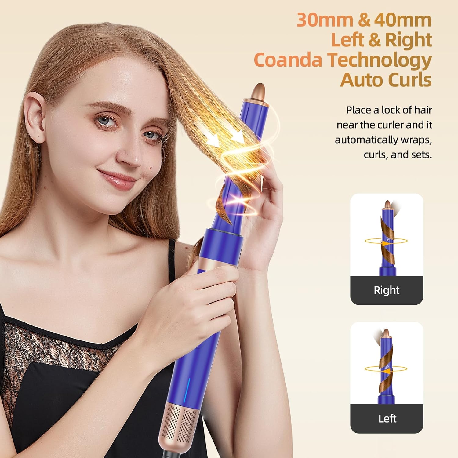 • Professional Air Automatic Wrap Curler: This hair styler wand in Left/Right directions - using Coanda technology to automatically wrap and curl your hair, you can create Natural, Voluminous Curls in different directions, providing salon-quality results at home