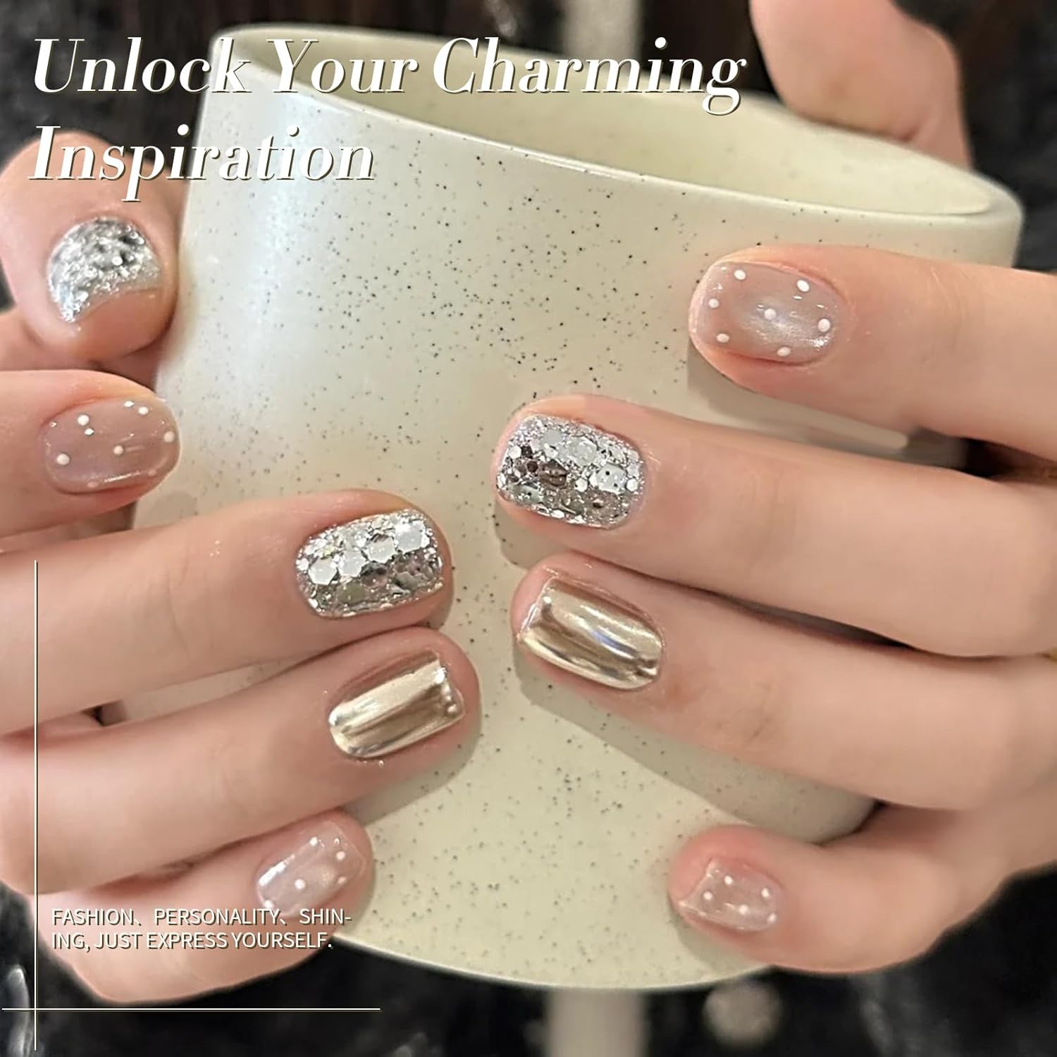 • [We Care for You]: Glitter Sequins in gel nail polish may settle over time; Before use, please remember to stir or shake it thoroughly; Different light sources, monitors and coating owns different color shades