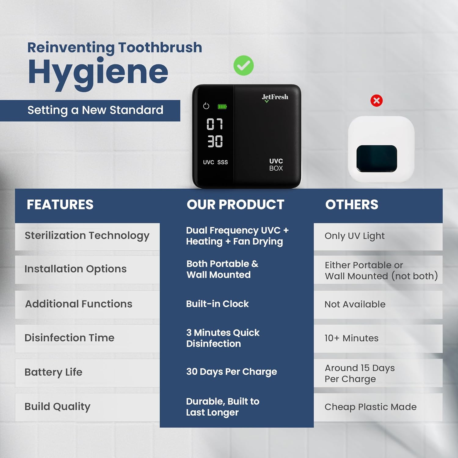 • Cordless, Rechargeable & Travel-Friendly : This compact toothbrush holders UV sanitizer Also works as a protective travel case. Its 650mAh battery lasts up to 30 days per charge and recharges in just 1.5 hours using a Type-C cable, perfect for home, office, or on-the-go.