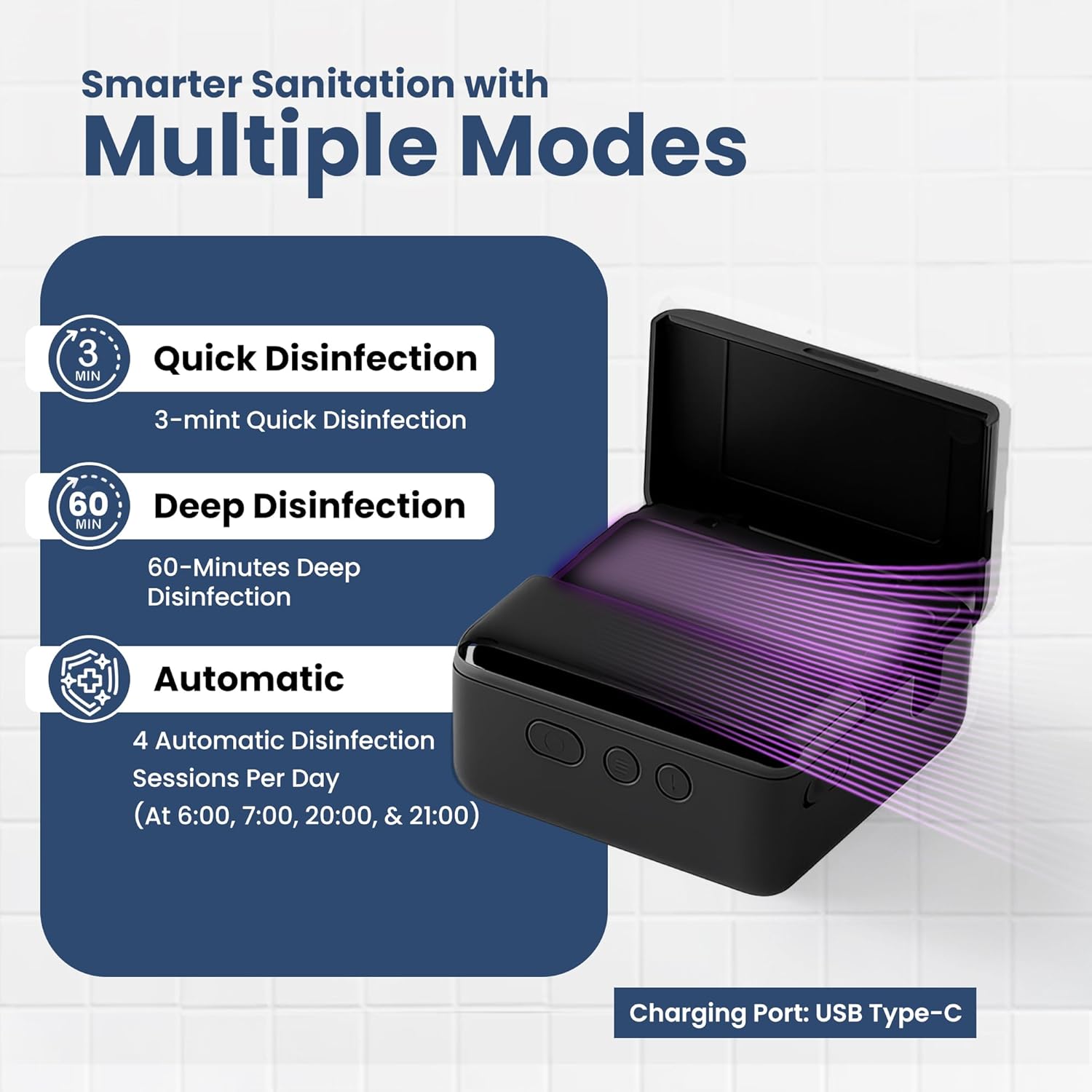 • Precision UV-C Care with Advanced Heating + Fan drying : Eliminate 99.9% impurities with powerful dual-band UV-C light and warm airflow. This UV tooth brush sanitizer holder keeps your brush cleaner and drier making it safe for daily use by the whole family.