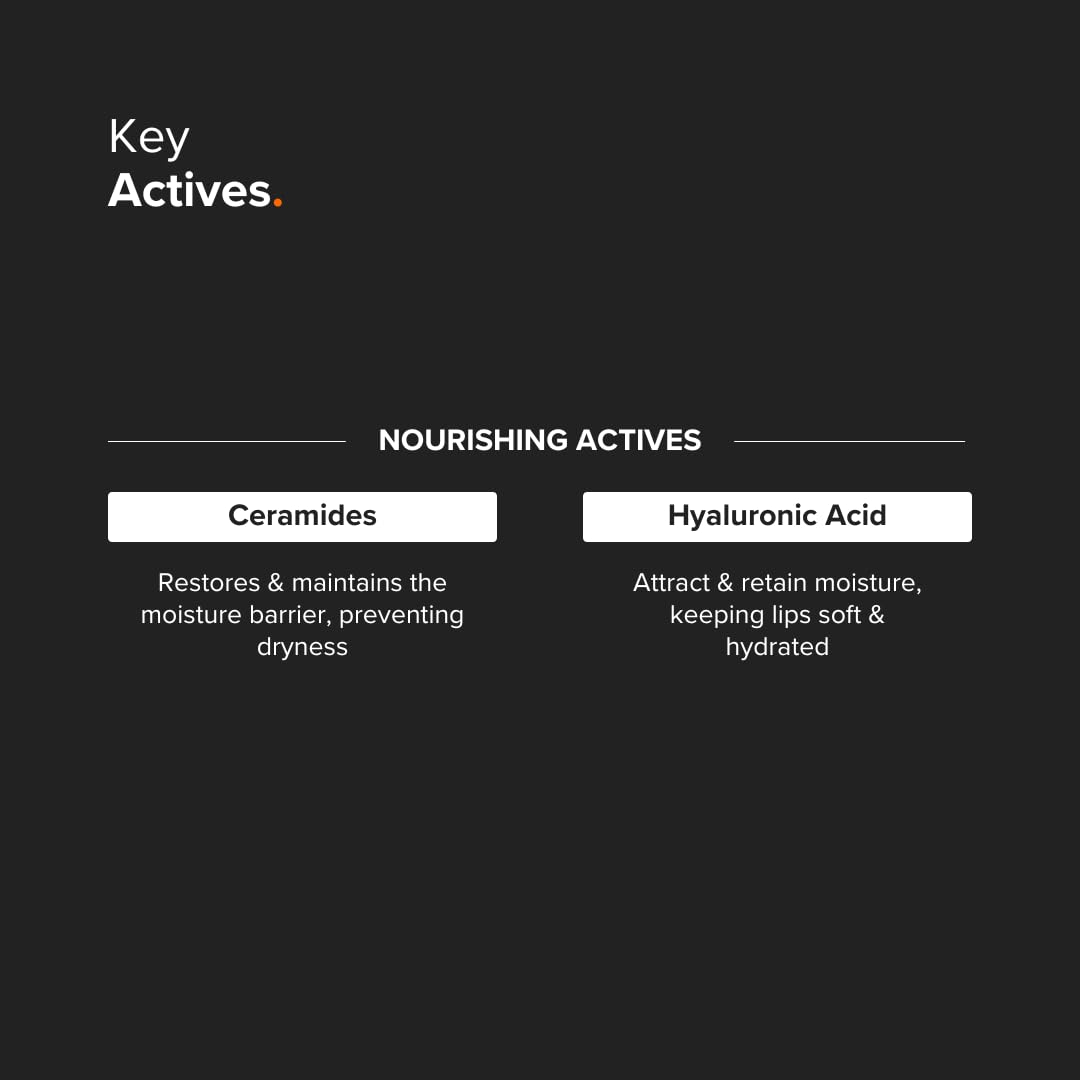 • [ ACTIVE INGREDIENTS ]: Formulated with nourishing ingredients like Ceramide, Hyaluronic Acid, Avocado Butter, Petrolatum, & Shea Butter that heal, soothe and hydrate chapped and irritated lips