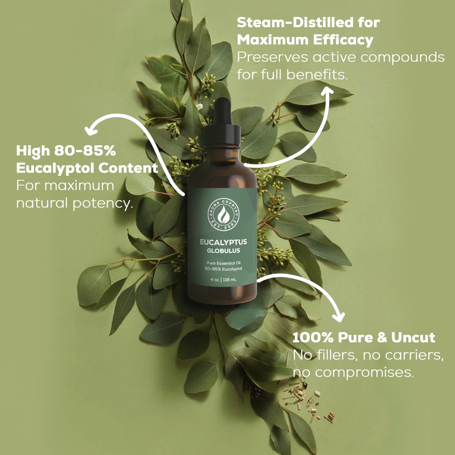 • 100% PURE & ORGANIC EUCALYPTUS OIL – Aroma Country Eucalyptus Globulus Essential Oil is 100% natural, organic, and undiluted—no fillers or additives. Steam-distilled for maximum potency and therapeutic benefits.