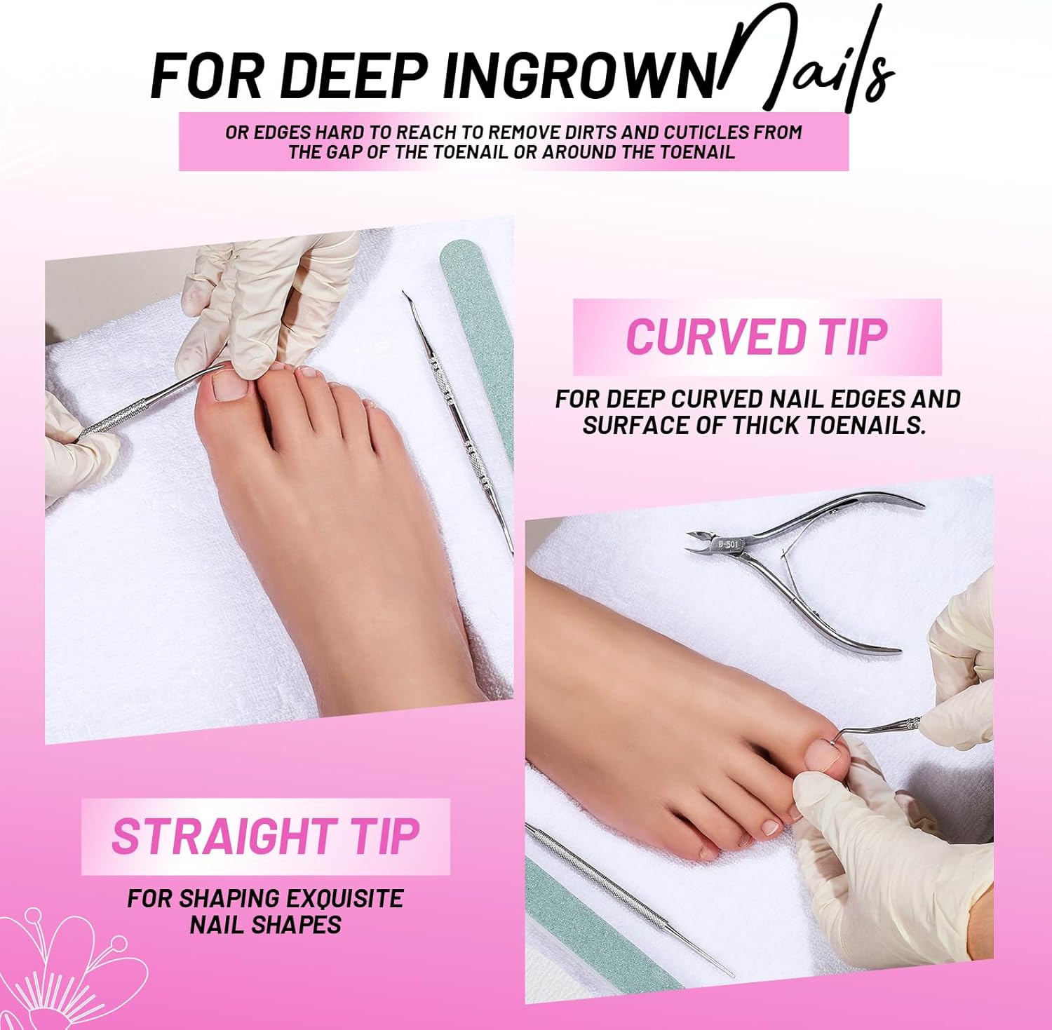 • Nail Lifter Ingrown Toenail Tools Kit: The ingrown toenail lifter is designed with the angled heads that can lift the nail corners to reach nail edge easily and remove the stubborn debris effortlessly. It helps to get rid of the pain and discomfort caused by ingrown toenails. The stainless steel nail file consists of a straight end for filing the outer flat surface of the nails and a curved end for trimming the curved surface, nail edge and nail corners. Practical nail tools for pedicure.