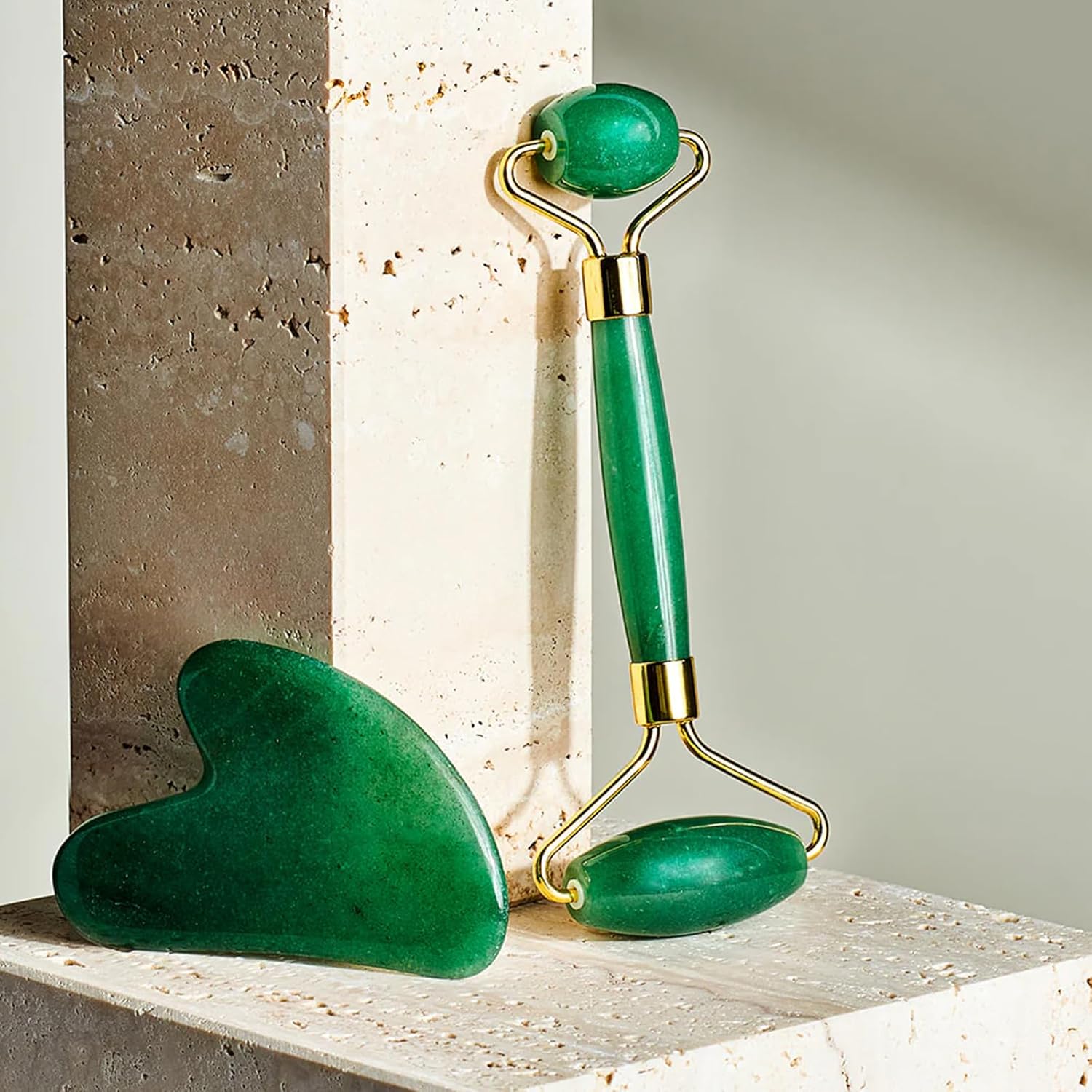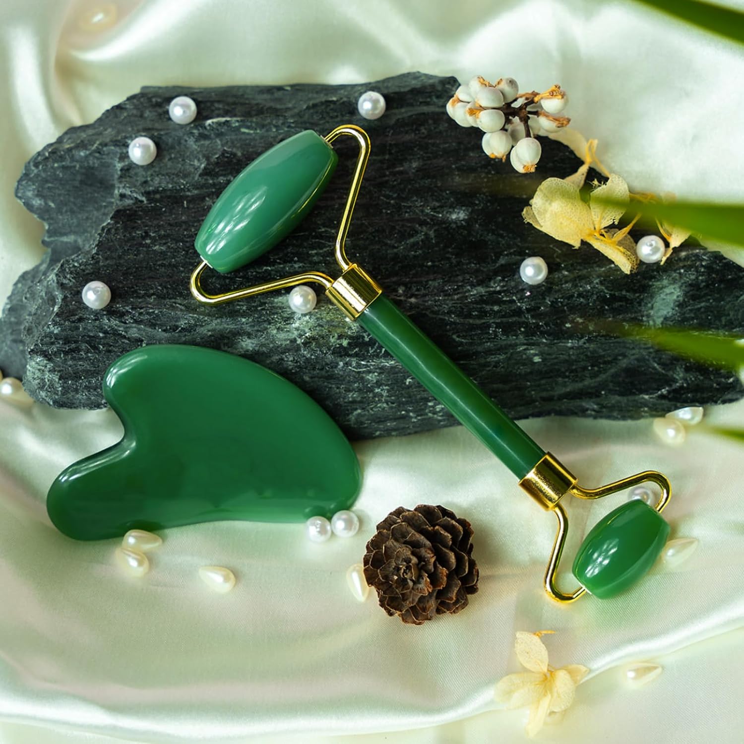 • 2-in-1 Skincare Set – Includes a facial roller for gentle massage and a Gua Sha board for deeper contouring, improving skin elasticity and reducing the appearance of fine lines.