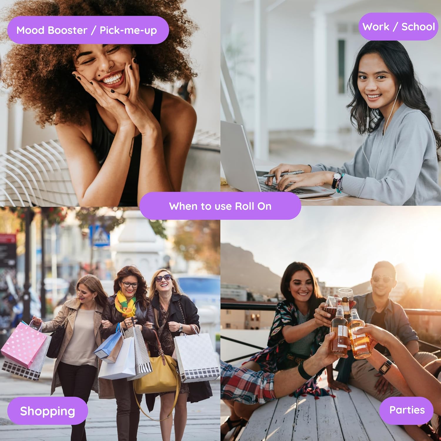• ON-THE-GO CONVENIENCE - Our roll-ons are thoughtfully crafted with a travel-friendly size, making them perfect companions for your daily adventures. Slip one into your bag or pocket and effortlessly elevate your mood anytime, anywhere. The sleek and compact design ensures mess-free application, while the rollerball glides smoothly over your skin, delivering the perfect amount of scent with each stroke.