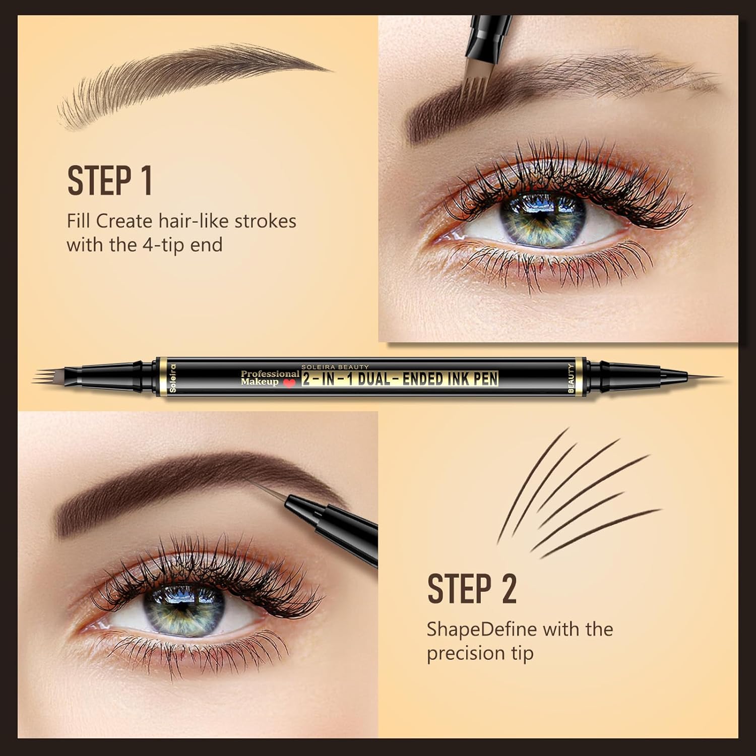 Eyebrow Pen, Soleira Waterproof Eyebrow Pencil with 4 Tip Microblading Eyebrow Pen and Dual-ended Eyebrow Brush, for Natural-Looking Brows, Long-Lasting, COFE Dark Brown