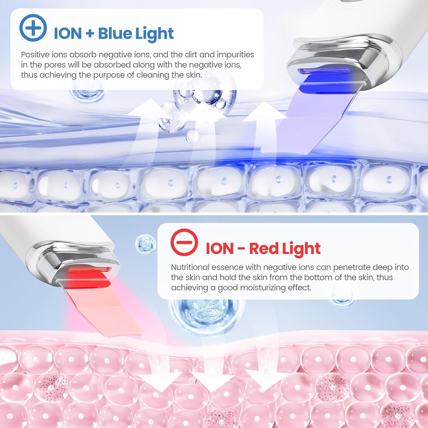 • 【Adjustable 4 Modes Skin Scrubber】The multi-functional skin scrubber face spatula allows you to experience a complete and well-designed skincare routine. Its 3D curved stainless steel spatula effortlessly navigates your face, even around tricky areas, removing buildup and debris. Simply wet your face and glide the spatula for a spa-like experience, with Cleansing and Lon+ modes for deep cleansing by removing, and Lon- and Lifting modes for maximising the benefits and messaging of skincare products by introducing. Note: The recommended frequency of use is 2-3 times per week.