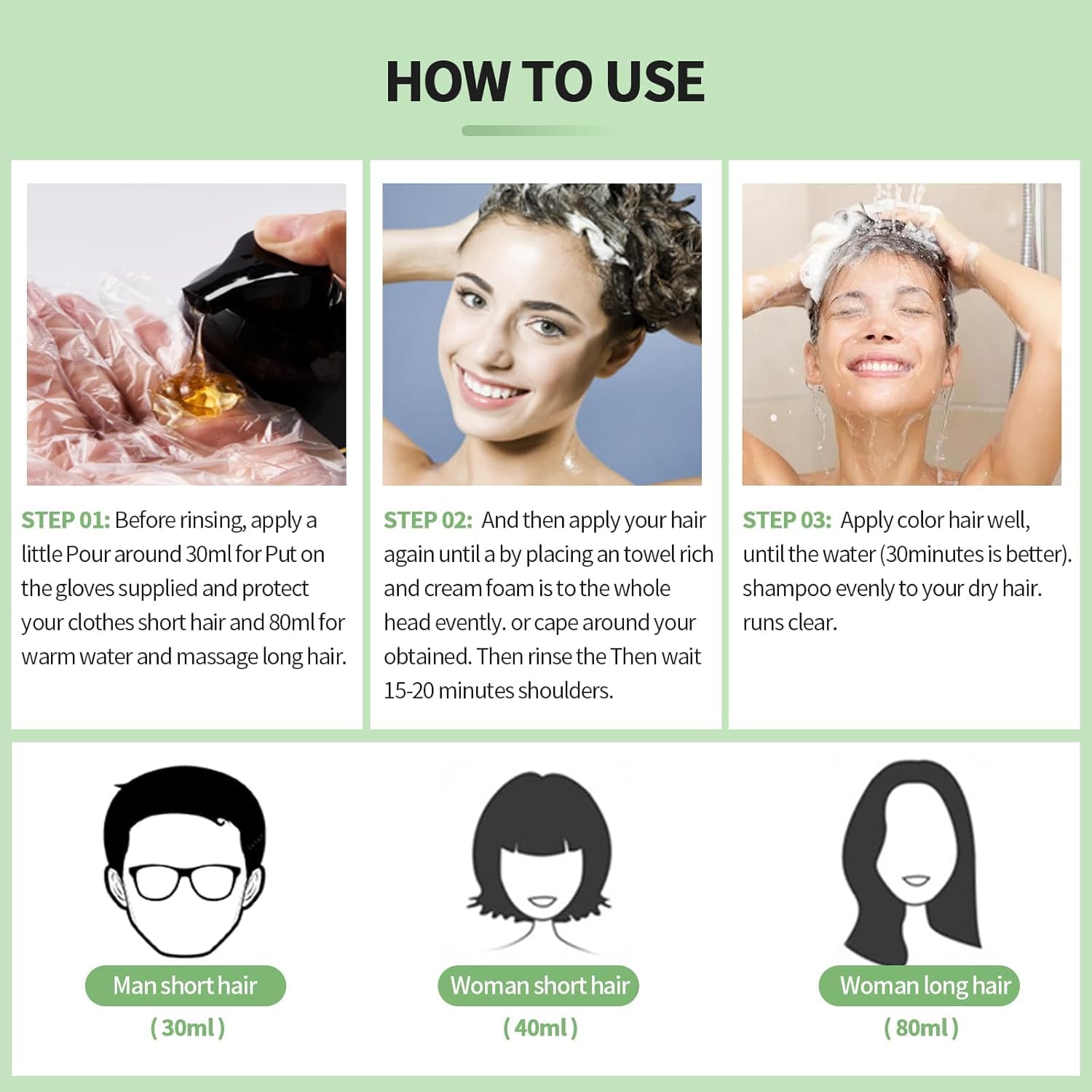• Note: Different hair base colors dye out with slight deviation. When dyeing hair, it is recommended to apply cream at the intersection of hair and skin, so as to avoid dyeing to the skin. If you're not completely satisfied with our 3-in-1 hair coloring shampoo, we offer a 100% satisfaction guarantee. Try it out risk-free and see the difference for yourself!