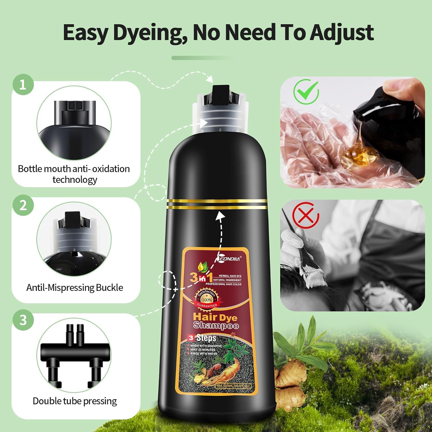 • Revolutionary Hair Dye Shampoo 3 In 1 - Our hair coloring shampoo is a combining shampoo, conditioner, and hair dye all in one easy-to-use product. Say goodbye to the hassle of traditional hair dye and hello to a revolutionary new way to color your hair at home.