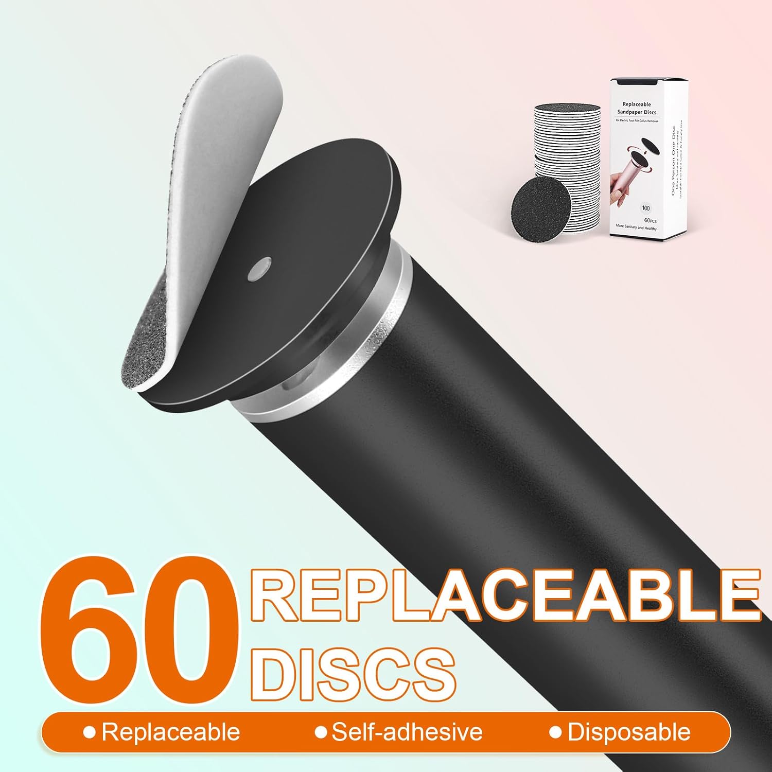 • SPONGE BACKED ADHESIVE SANDPAPER: 60 Replaceable sponge backed adhesive sandpaper discs, easy to stick, firm and stable, will not fall off when using the electric foot callus remover.