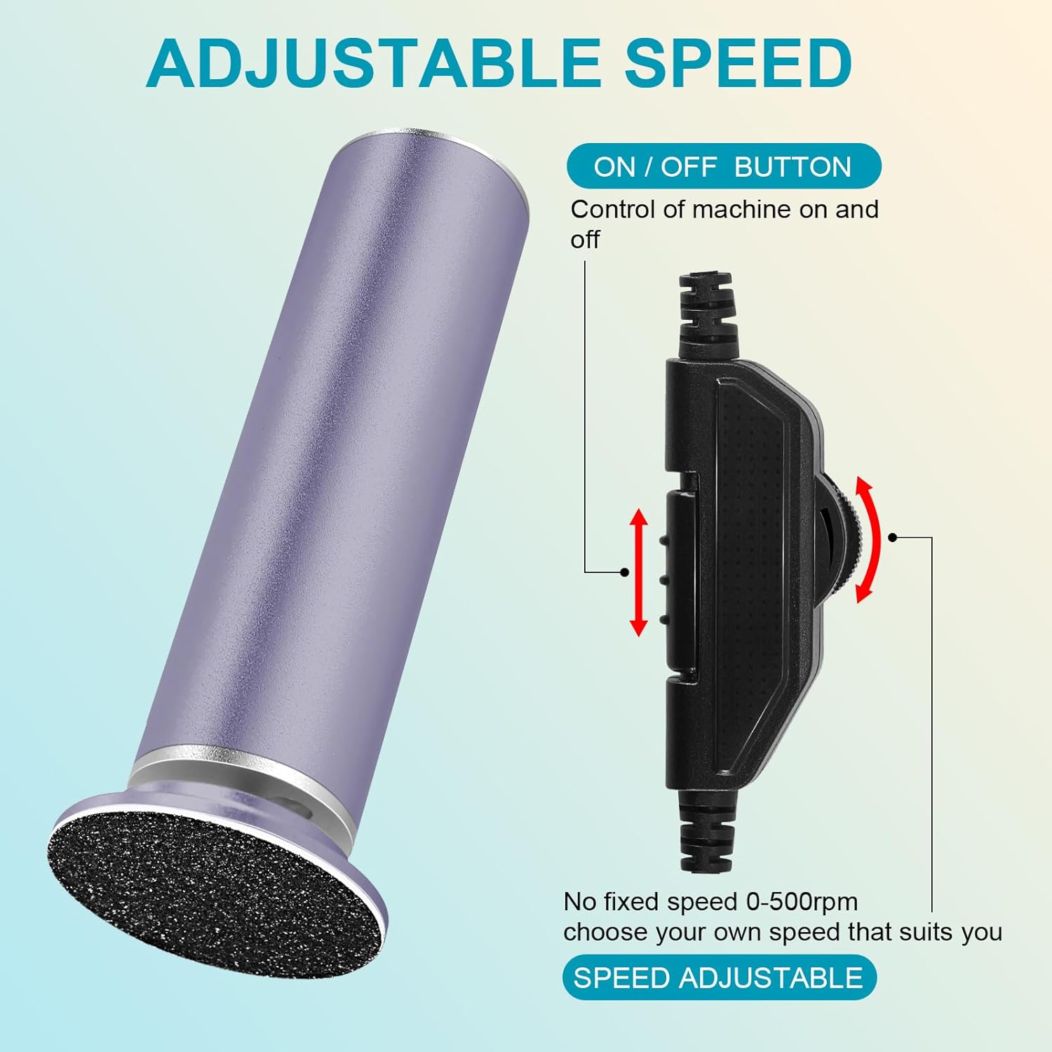 • ADJUSTABLE SPEED: Are you still using traditional electric feet callus remover with only 3 or 2 speeds? Our electric foot file sander has unlimited speeds, and you can adjust the speed within the speed range (0-500rpm) to suit yourself, removing dead skin from the heel more gently and smoothly.