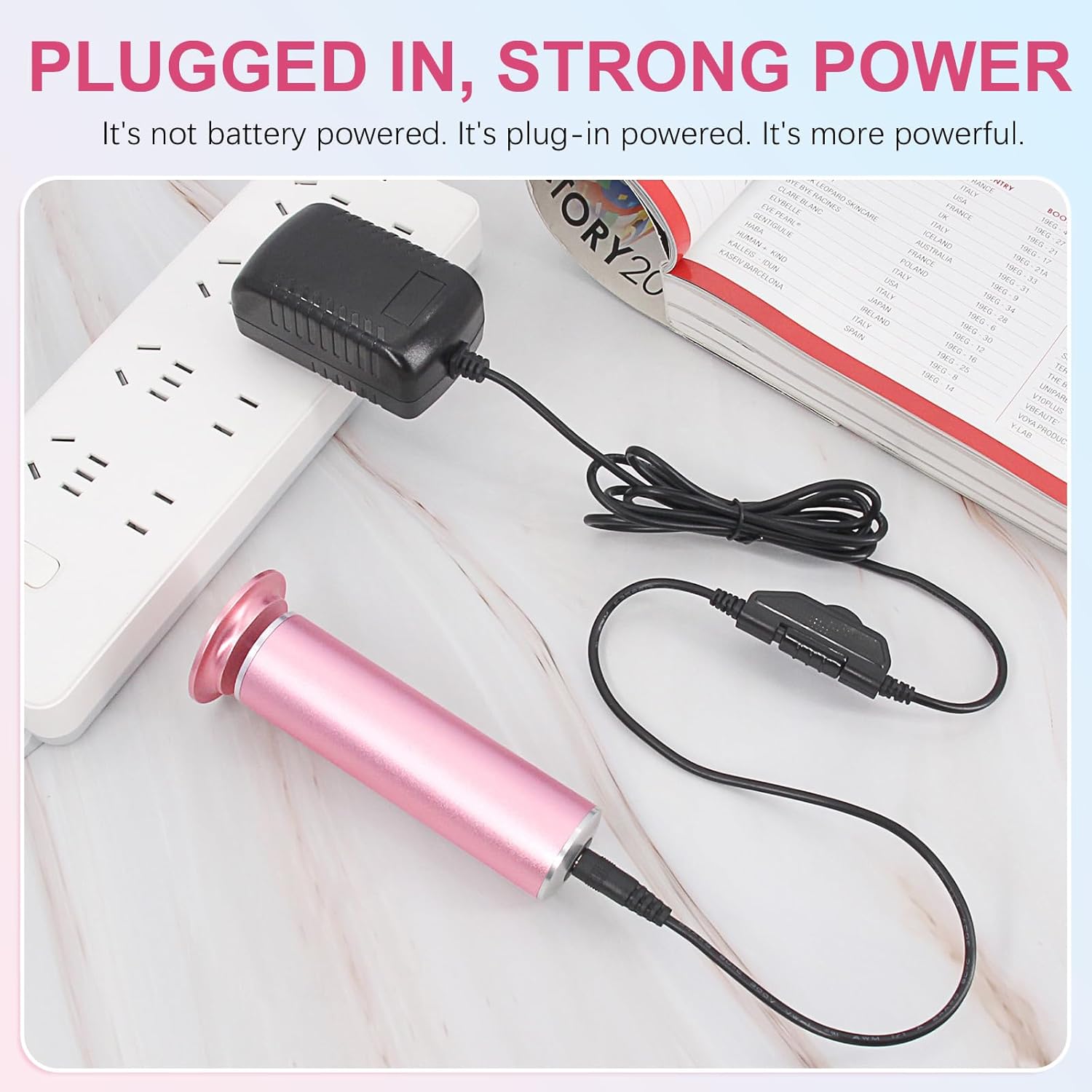 • PLUG IN ELECTRIC FOOT FILE WITH STRONG POWER: When using electric foot callus remover, keep the adapter plugged into the socket, so the power output is stable and strong, making it easy to remove dead skin from the heel. (Please note that electric foot sander callus remover is not battery powered)