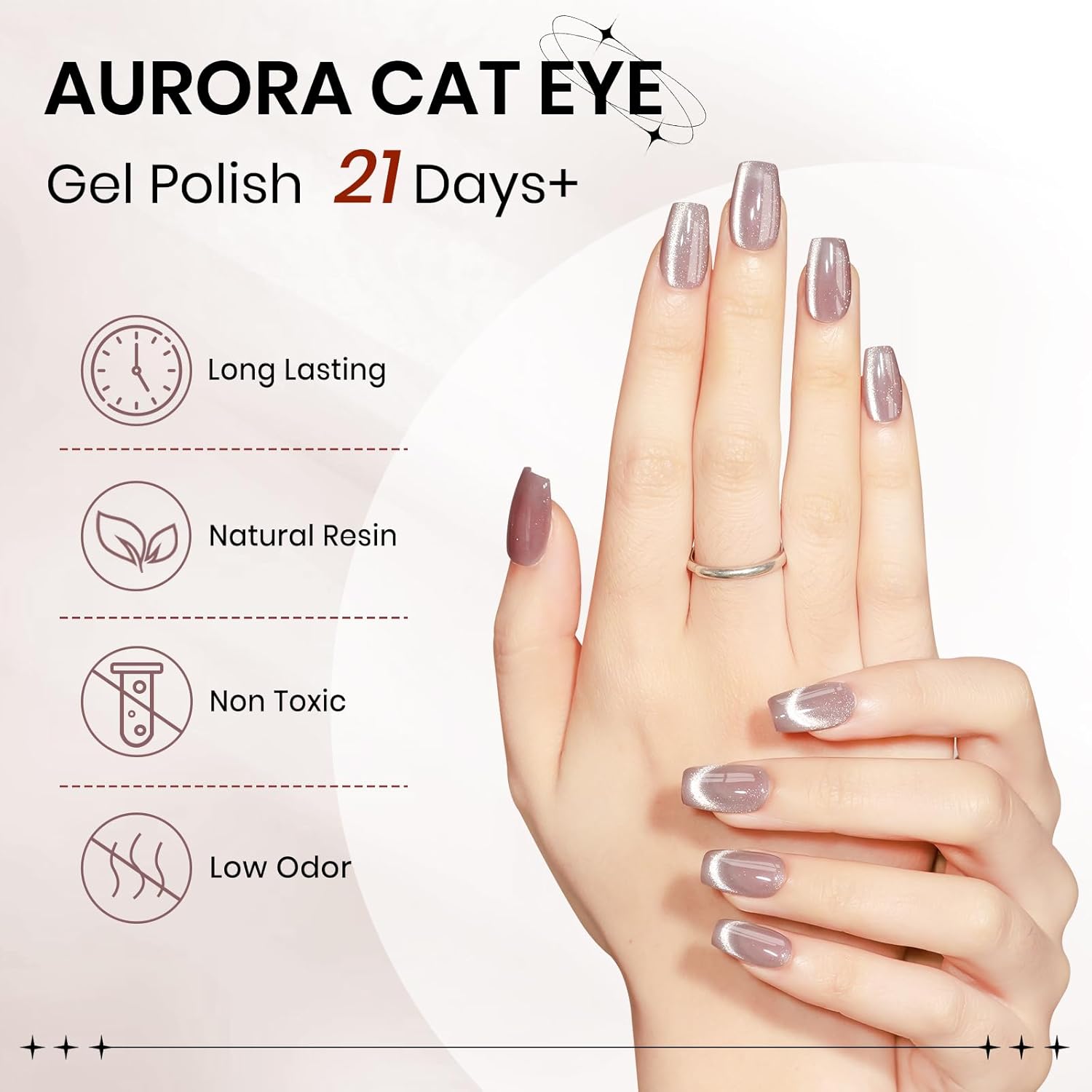 • Smoothie Cat Eye Gel Polish: 1*15ml(0.5fl oz) nude cat eye gel nail polish with 1PC magnetic stick. Mixed with smoothie magnetic glitter, it's perfect for making a statement