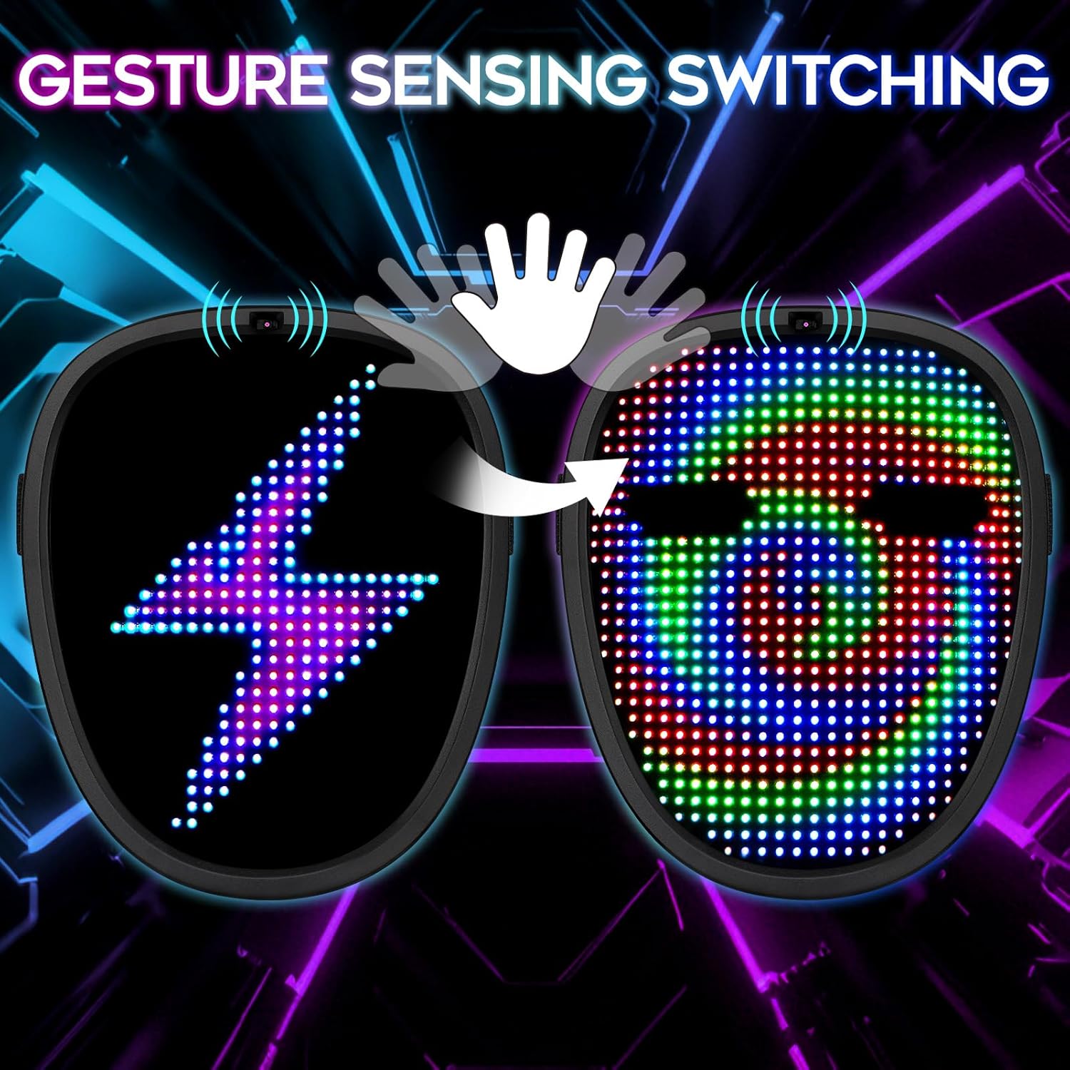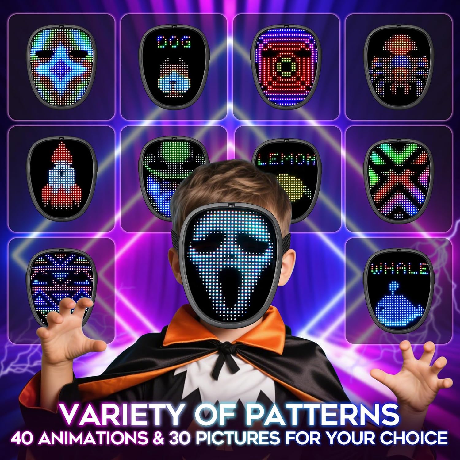• Awesome Darkness Superstar: Our LED mask for kids features 40 dynamic display modes and 30 static display images, supports gesture sensing and can be changed to different patterns/pictures by simply waving your hand across the mask. Bright and vibrant colors, along with the excellent graphics and animations, the coolest LED Mask is easy to make your kids look distinctive and eyeball-catching in the crowd!
