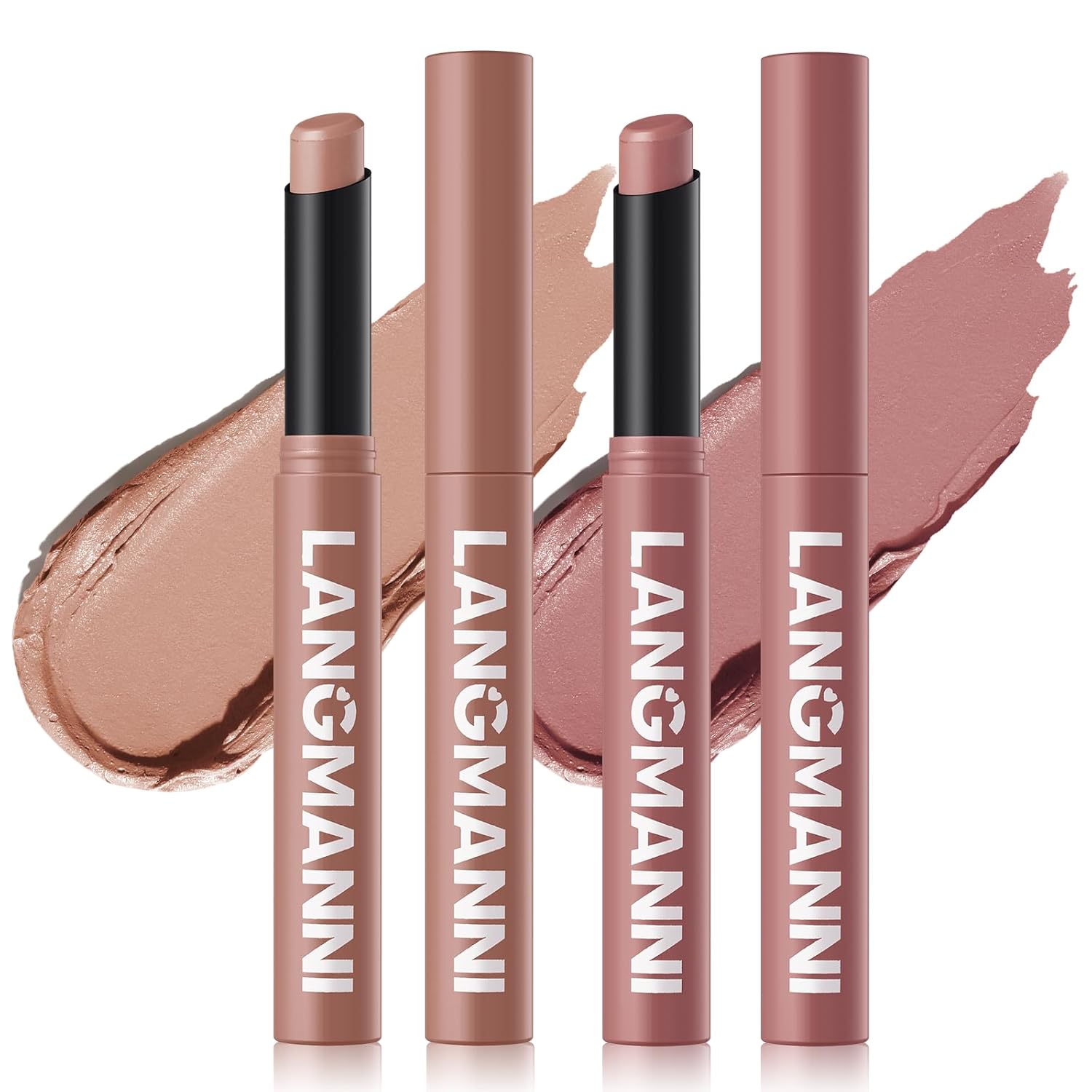 Jolilab 2Pcs Velvet Matte Lipstick Nude Matte Soft Dark Color Stick High Pigmented Long-Lasting Waterproof Lip Stick Lip Balm Beauty Cosmetics Gift for Girls and Women(03#+04#