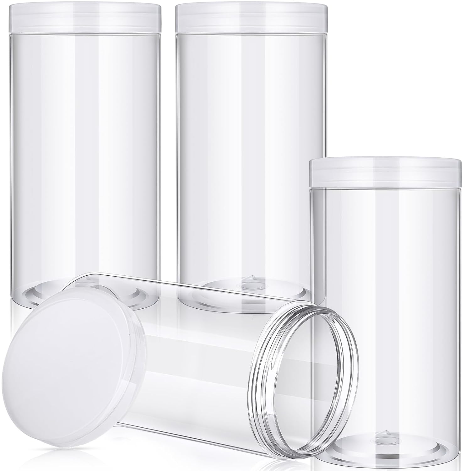 Patelai 4 Pieces Round Wide-mouth Leak Proof Plastic Container Jars with Lids for Travel Storage Makeup Beauty Products Face Creams Oils Salves Ointments DIY Making(32 Ounce,Clear)