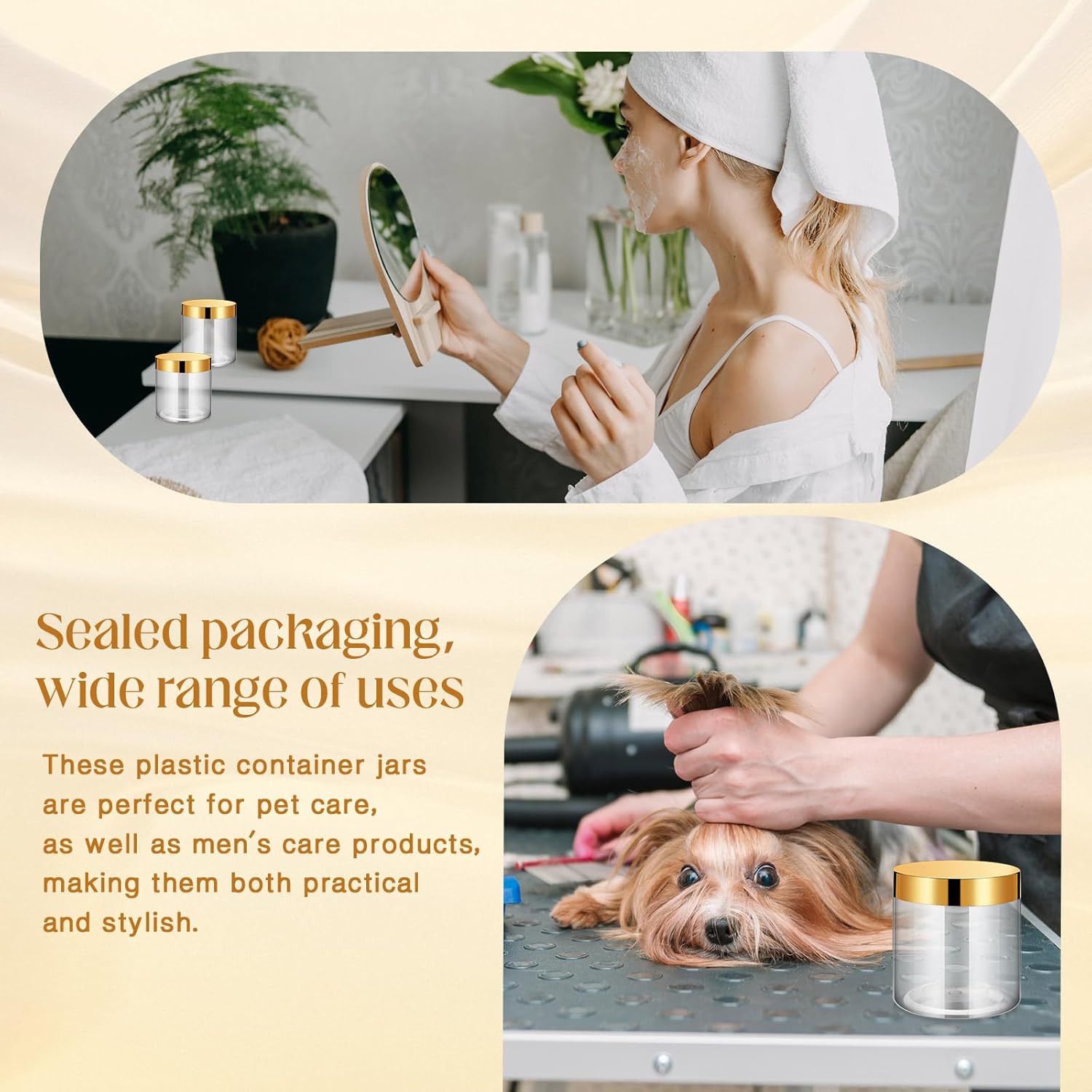 Patelai 4 Pieces Round Wide-mouth Leak Proof Plastic Container Jars with Lids for Travel Storage Makeup Beauty Products Face Creams Oils Salves Ointments DIY Making(16 Ounce,Gold)