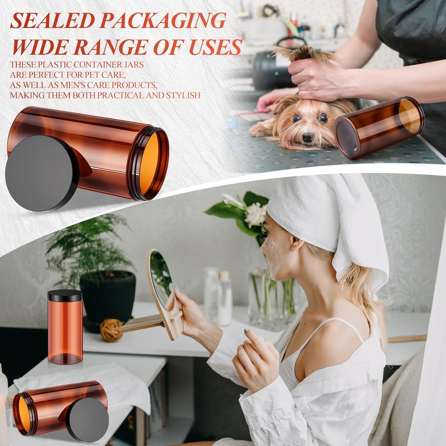 Patelai 4 Pieces Round Wide-mouth Leak Proof Plastic Container Jars with Lids for Travel Storage Makeup Beauty Products Face Creams Oils Salves Ointments DIY Making(32 Ounce,Amber)