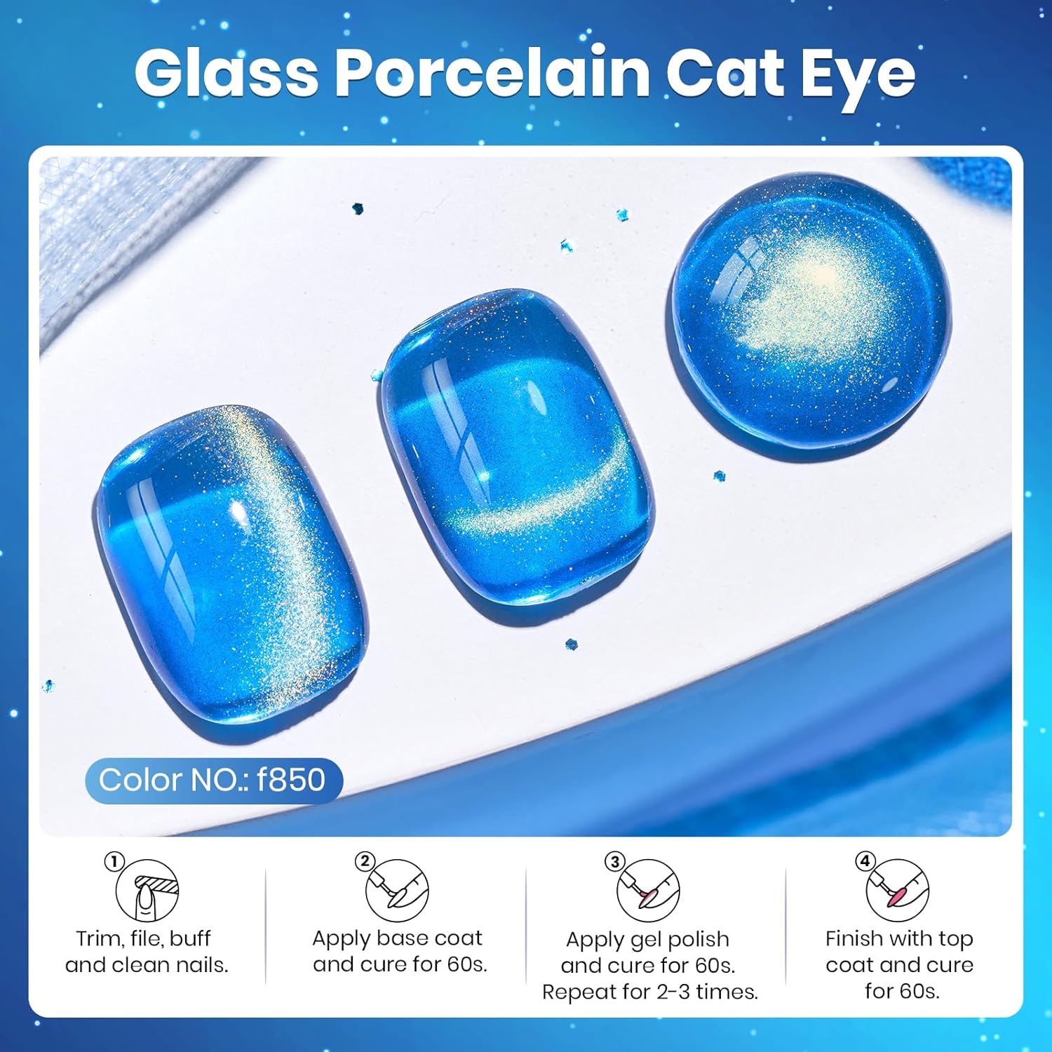• 【Speed Curing with Uv/Led Lamp】The blue cat eye gel polish kit needs to be cured under the uv/led light. The average time for uv/led lights is 60-120 secs. It remains sticky after curing and must be used with a base coat and top coat! (Note:This item does not include a base&top coat, which needs to be purchased separately)