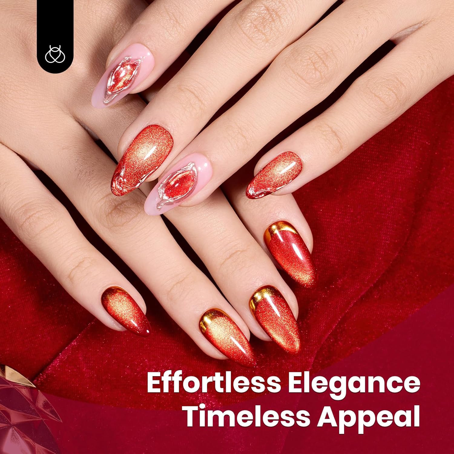 • 【Fashion Cat Eye Styles】Beetles 15ML Red Cat Eye Gel Nail Polish with Gold Powder! Enchanting red, shimmering like a ruby in a magical fairy tale! Creating your shining nail style to be more sparkling every day. The fun of cat eye nails lies in how customizable they can be, you only need a small magnet to create many effects.