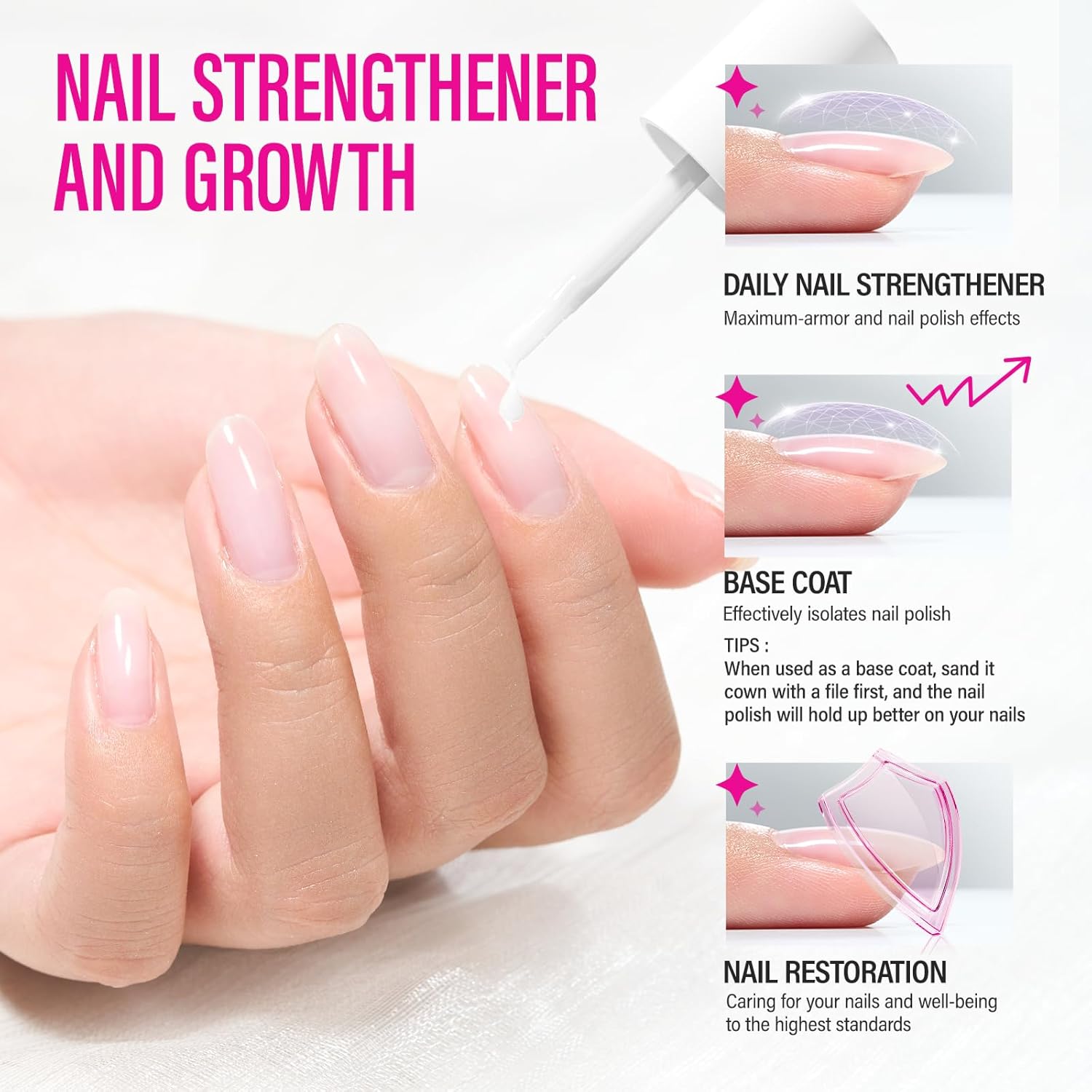 • Tough on Weak Nails with Nail Ridge Filler! Our nail strengthener is perfect for weak, damaged, or brittle nails—common issues for nail technicians, homemakers, office workers, healthcare workers, catering workers, and gardening workers. Caused by frequent hand washing, harsh chemicals, or long-term nail enhancements, these problems can leave nails weak and brittle. Our nail hardener restores strength and beauty!
