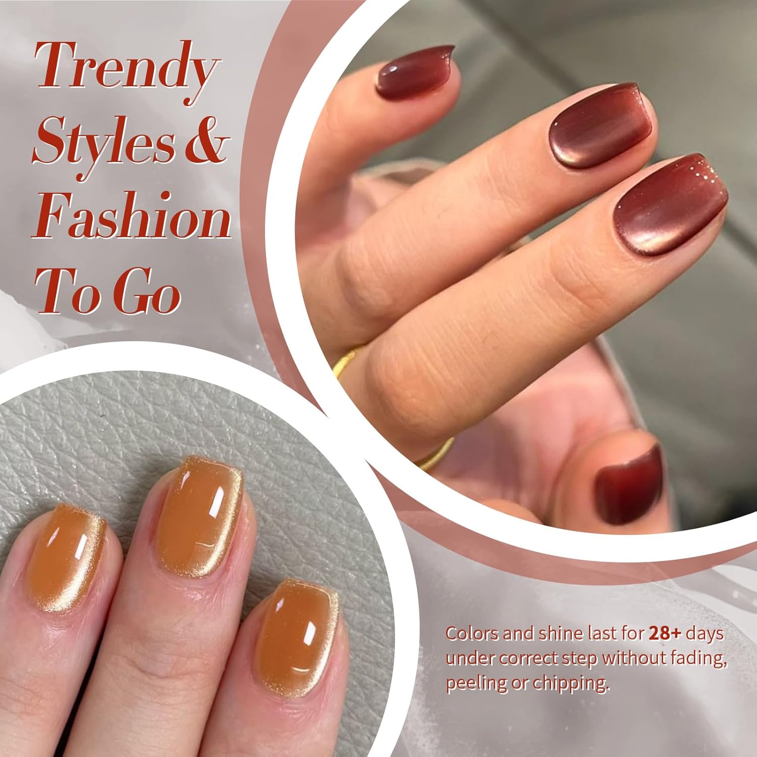 • PACKAGE CONTENTS:6 Bottles jelly crystal cat magnetic gel nail polish gift set .Transparent jelly glass bead texture, super amount of magnetic powder good suction is not easy to run, moist texture, delicate cat's magnetic eye luster, very suitable for spring and summer.