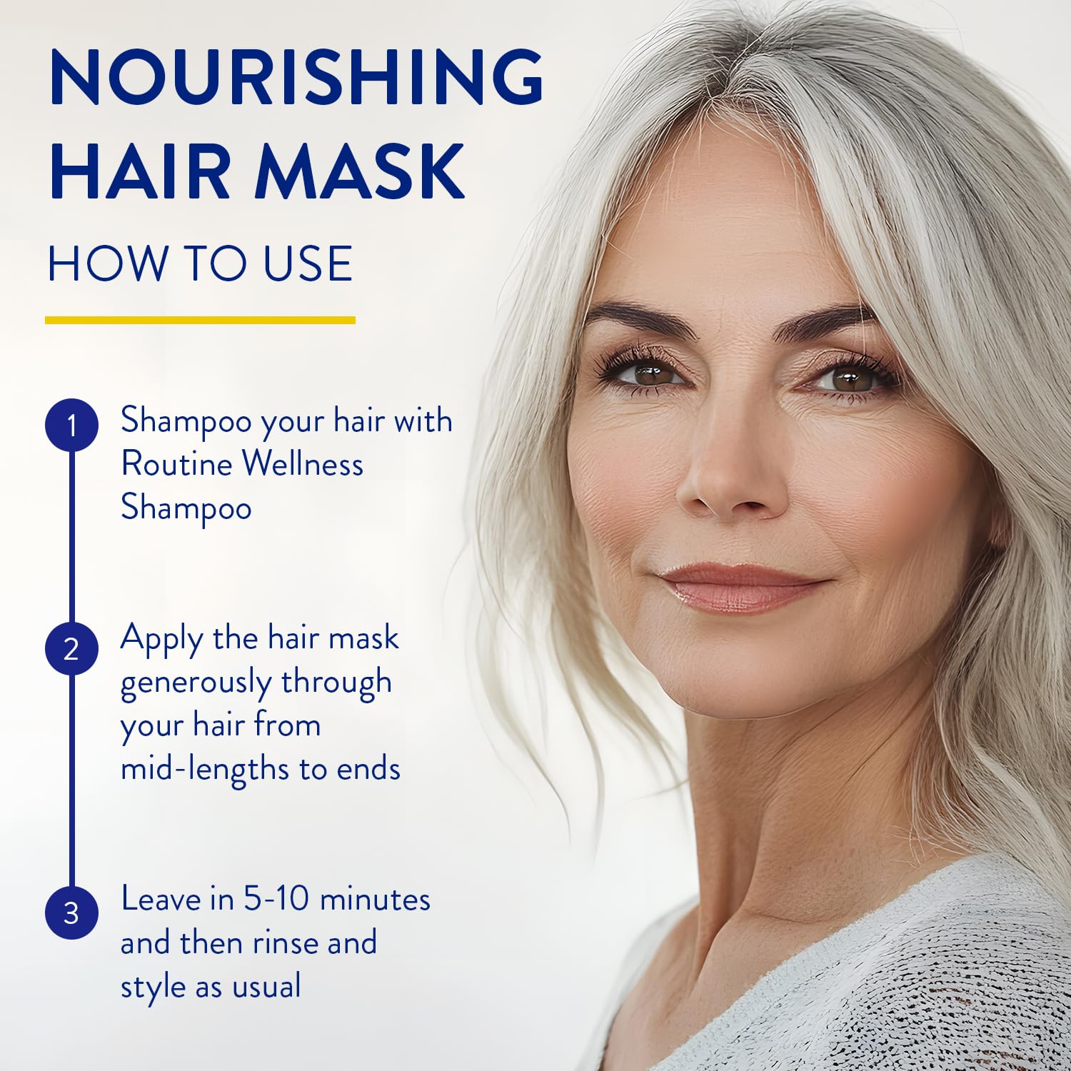 • SAFE FOR ALL HAIR TYPES AND COLOR SAFE: Our versatile hair mask promotes healthy, radiant hair for all hair types including thinning, fine, dry, damaged, straight, and is great as a curly hair mask. Our hair mask is also color safe. Routine Wellness Hair Masks protect against color fading and damage, ensuring your hair retains its beautiful hue while remaining soft and healthy.