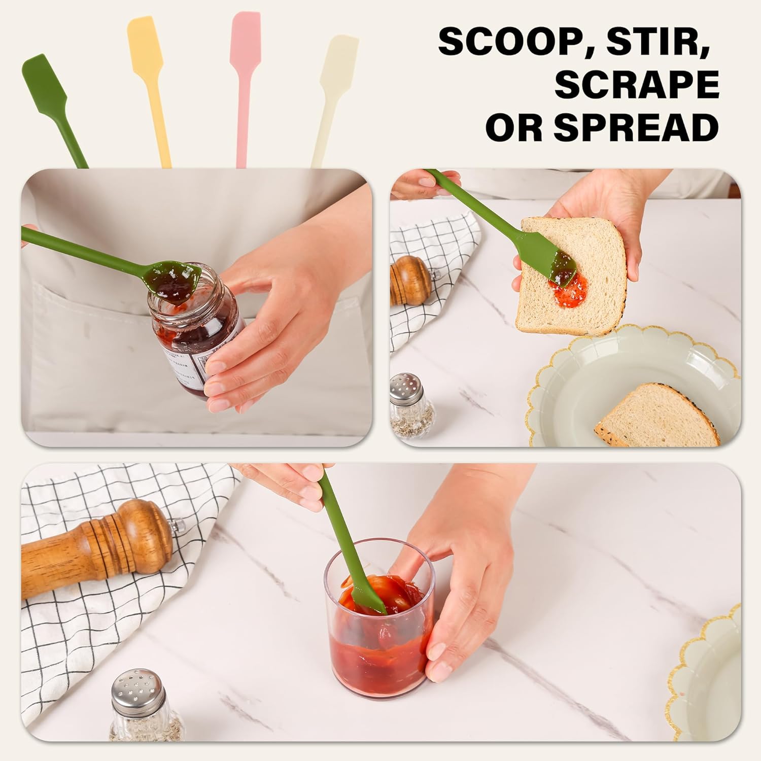 Silicone Jar Scraper Set of 4, Double-Headed, 10.2-Inch, Mini Spatula & Spoon for Jam Jars & Makeup