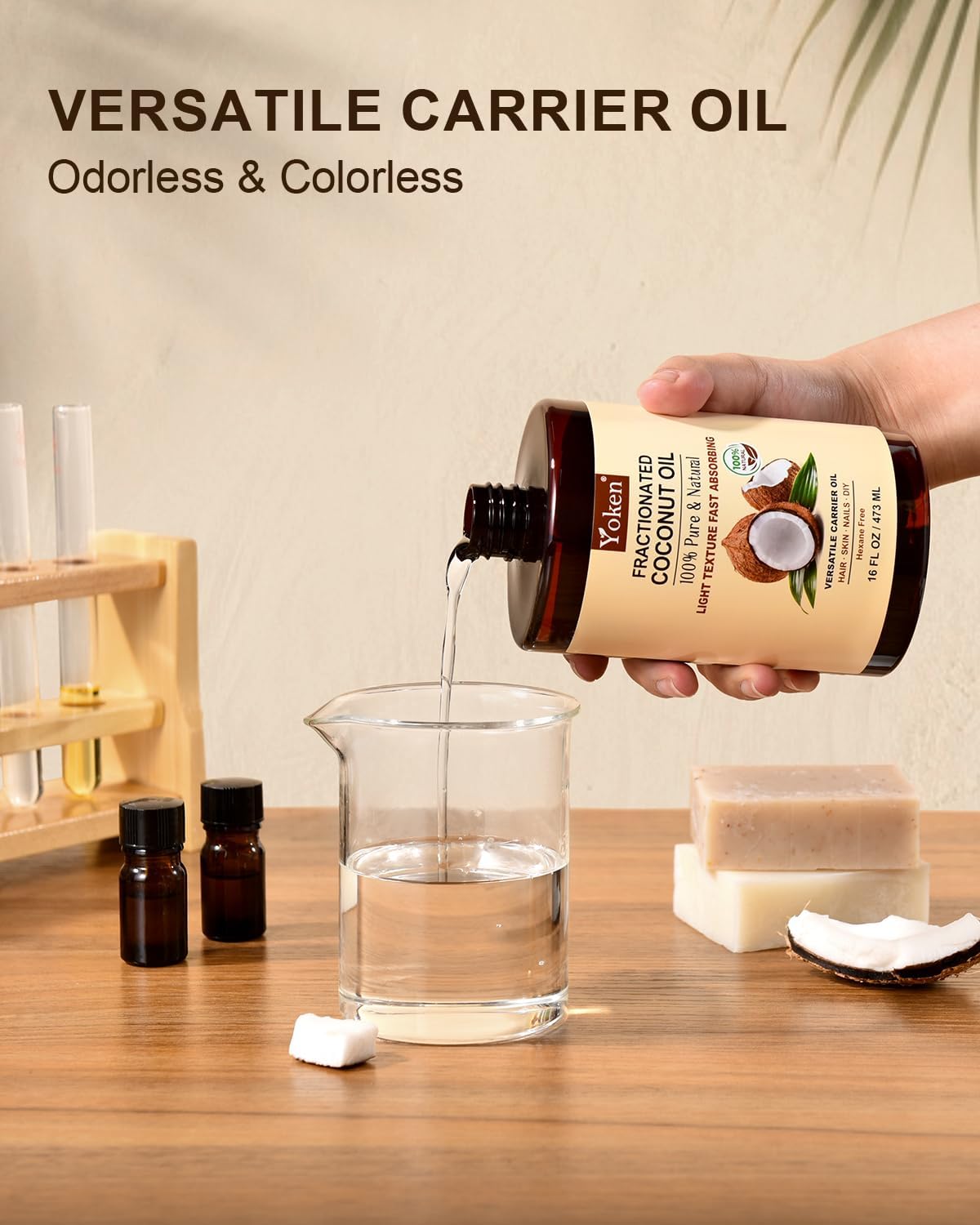 Yoken Fractionated Coconut Oil for Skin 16 Oz, 100% Pure & Natural Liquid Coconut Oil, Moisturizer for Hair, Face, Body, Carrier Oil for Essential Oils Mixing, Massage, Hexane Free, Unscented