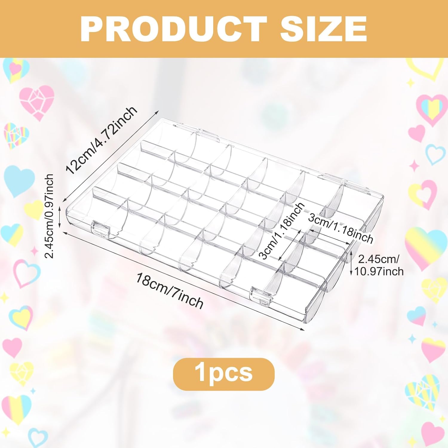 • 【Small Body & Large Capacity】This clear organizer measures jewelry box 18 x 12 x 2.45cm/7 x 4.72 x 0.97inch,inner grid 3 x 3 x 2.45cm/1.18 x 1.18 x 0.97inch,designed with 24 individual compartments for storing small parts or supplies,which will be a great choice especially for storage lovers, manicurists and DIY bead lovers!
