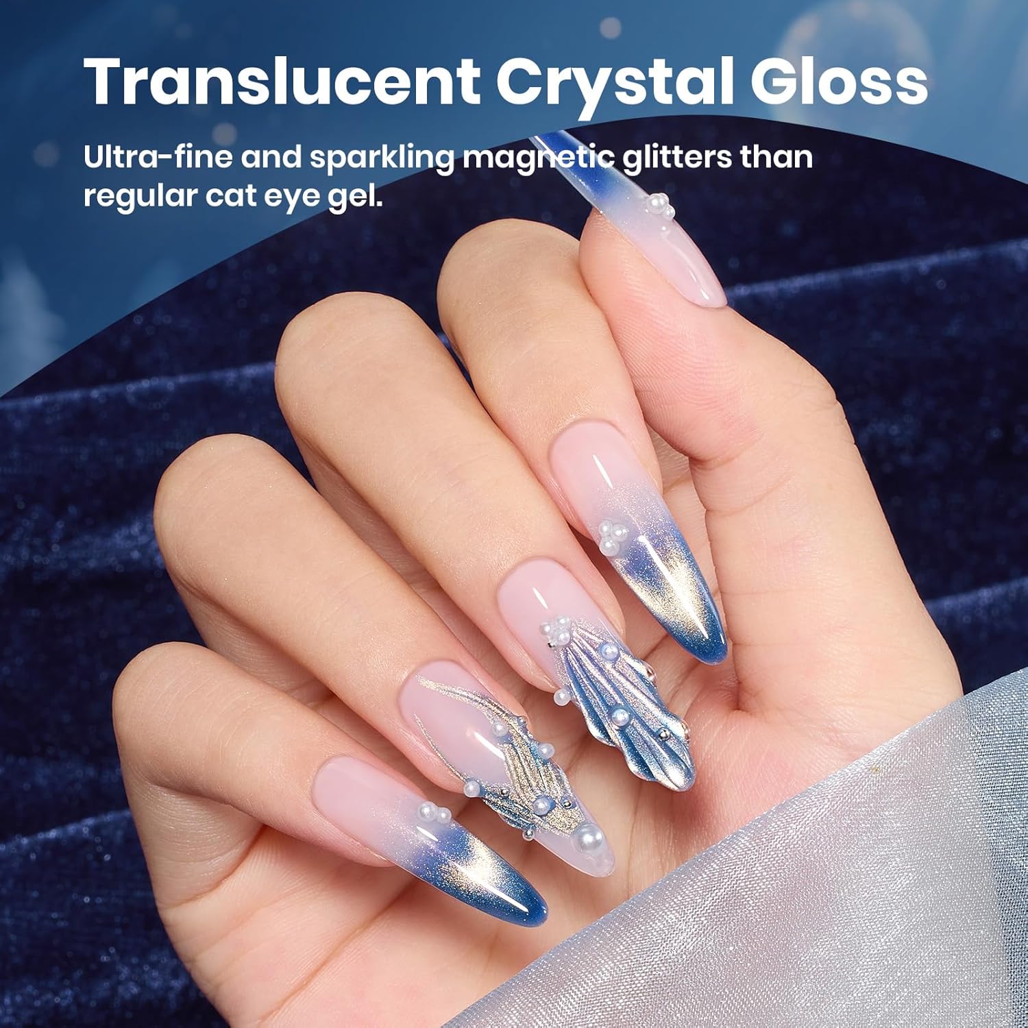• 【Frosted Sapphire Fall Cat Eye Gel】Shine like the stars with this icy blue cat eye gel polish. Its cool undertone naturally brightens any skin tone, while gold powder create a luminous, glassy finish. Inspired by the night sky, it delivers a flowing galaxy effect that's perfect for dreamy, futuristic, or elegant evening looks.