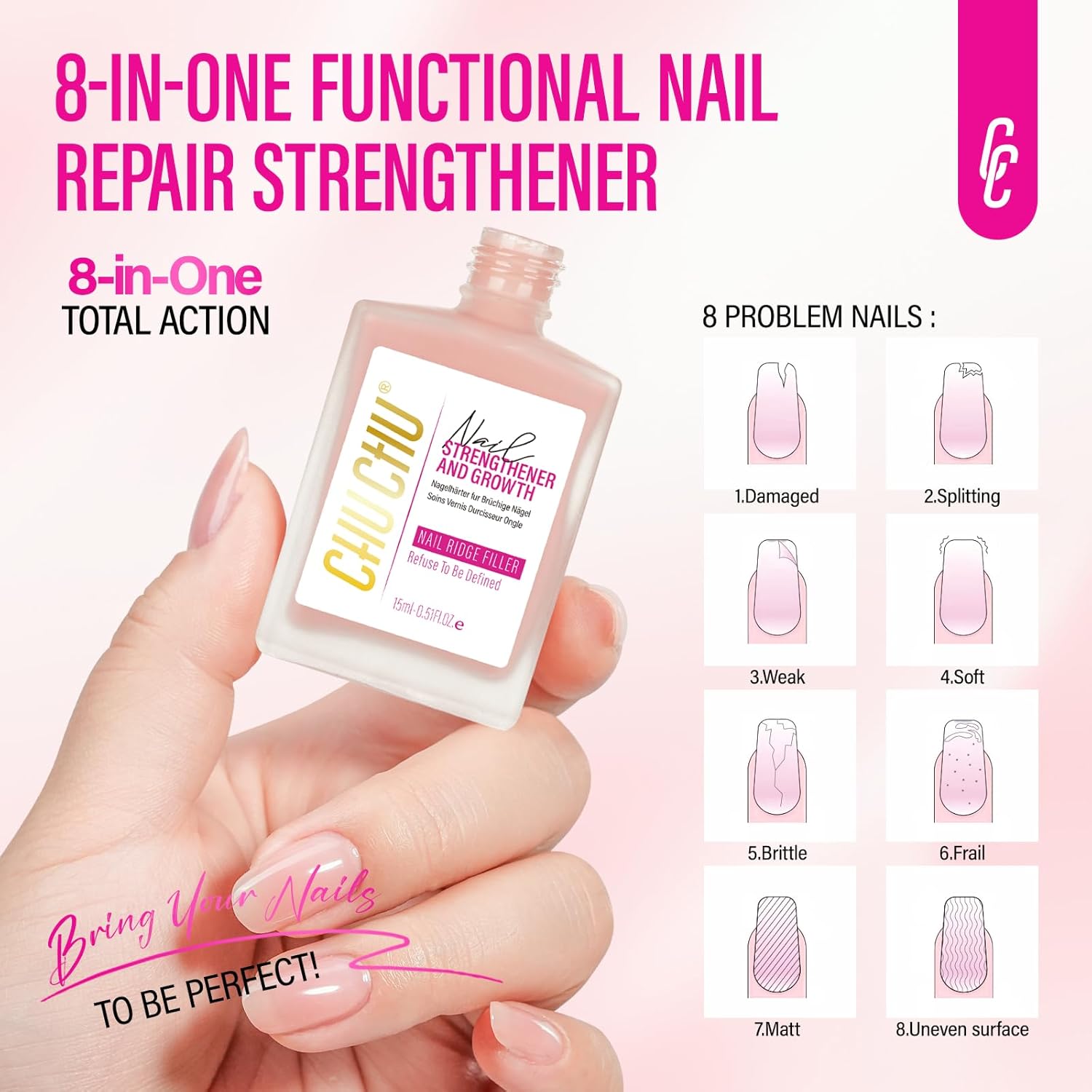 • Nail Strengthening and Growth for Your Nails: Our formula Helps seal cracks and reduce damage, boosting nail strength and preventing further harm. It's not just a nail ridge filler, it promotes healthy growth, giving you strong and beautiful nails that are ready for any artistic expression.