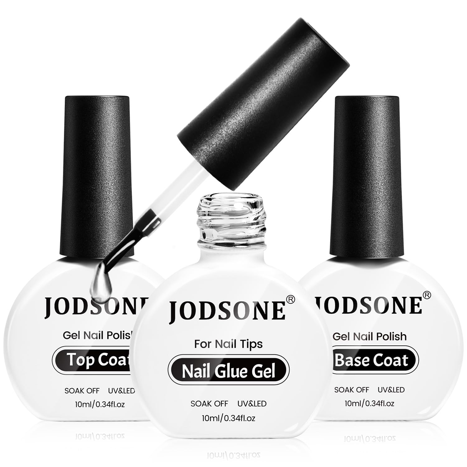 • What You Will Receive: JODSONE 3Pcs 10ml Top Coat, Base Coat, and Nail Glue Gel Set. The nail glue gel provides strong adhesion for nail tips and decorations, the base coat protects your natural nails, and the top coat delivers a high-gloss, long-lasting finish.
