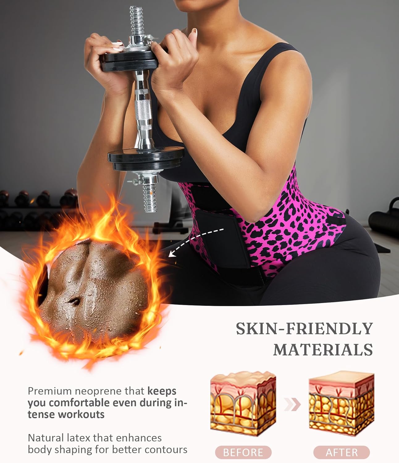 • Premium Stretch Fabric: Our waist trainer crafted from a blend of polyamide and spandex for targeted support and comfortable compression. The breathable material promotes natural heat retention during activity. Attention:Contains Latex Fiber. May cause allergic reactions in sensitive individuals. If you are allergic to latex or if you are not sure about this, please consult to your doctor for instructions before usage.