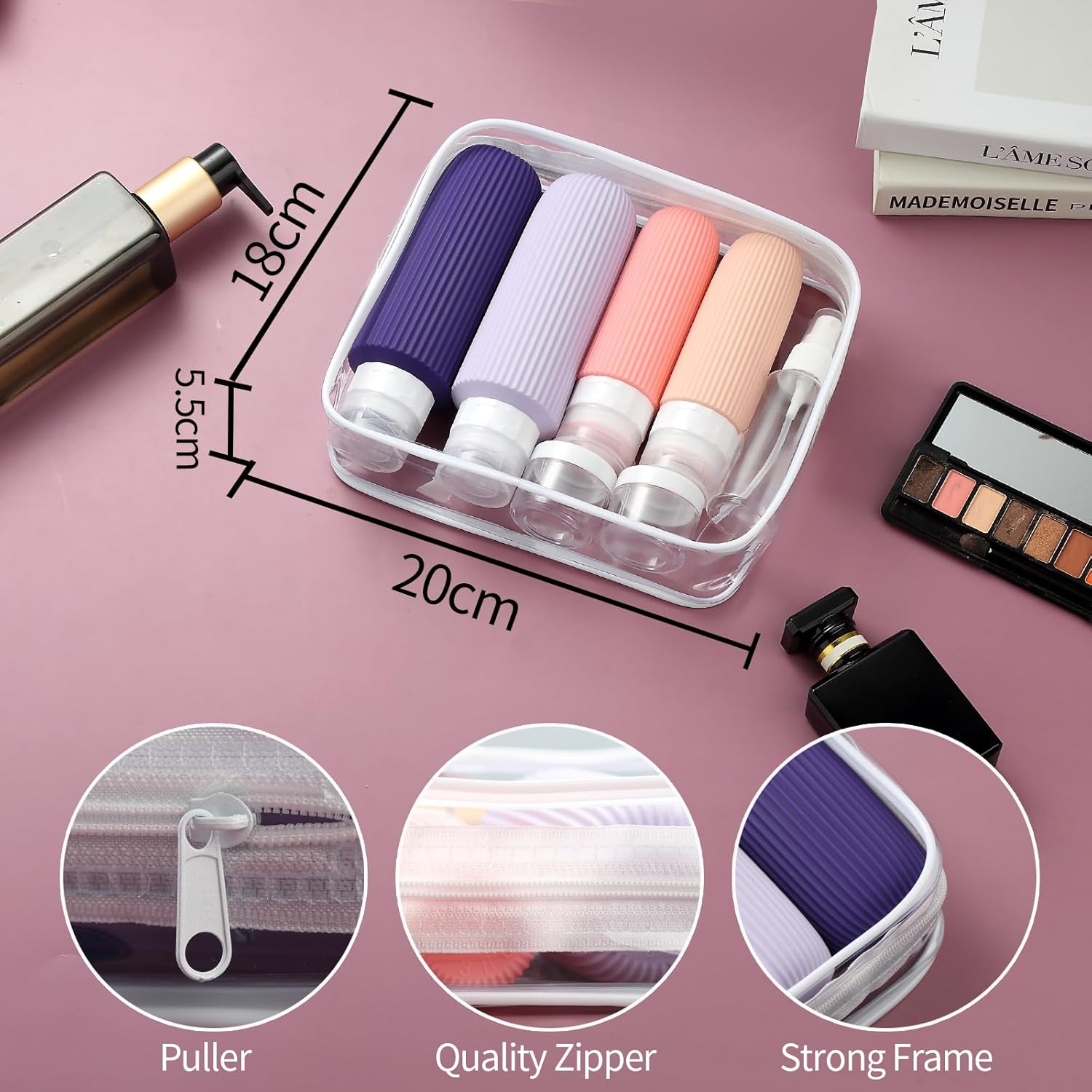 • Useful Travel Accessories: This is a oversize assortment of travel containers in a useful zip case. ( Come in 2 pcs Larege 6oz & 2pcs 3oz Travel Bottles + 4 Travel Jar s+ 2 Spray Bottles + 2 Scoopers + 1 Funnel + 1 Clean Brush + 1 Page Label + 1 Clear Toiletry Bag ) Multiple ones allow you take along different beauty products and toiletries according to your requirement
