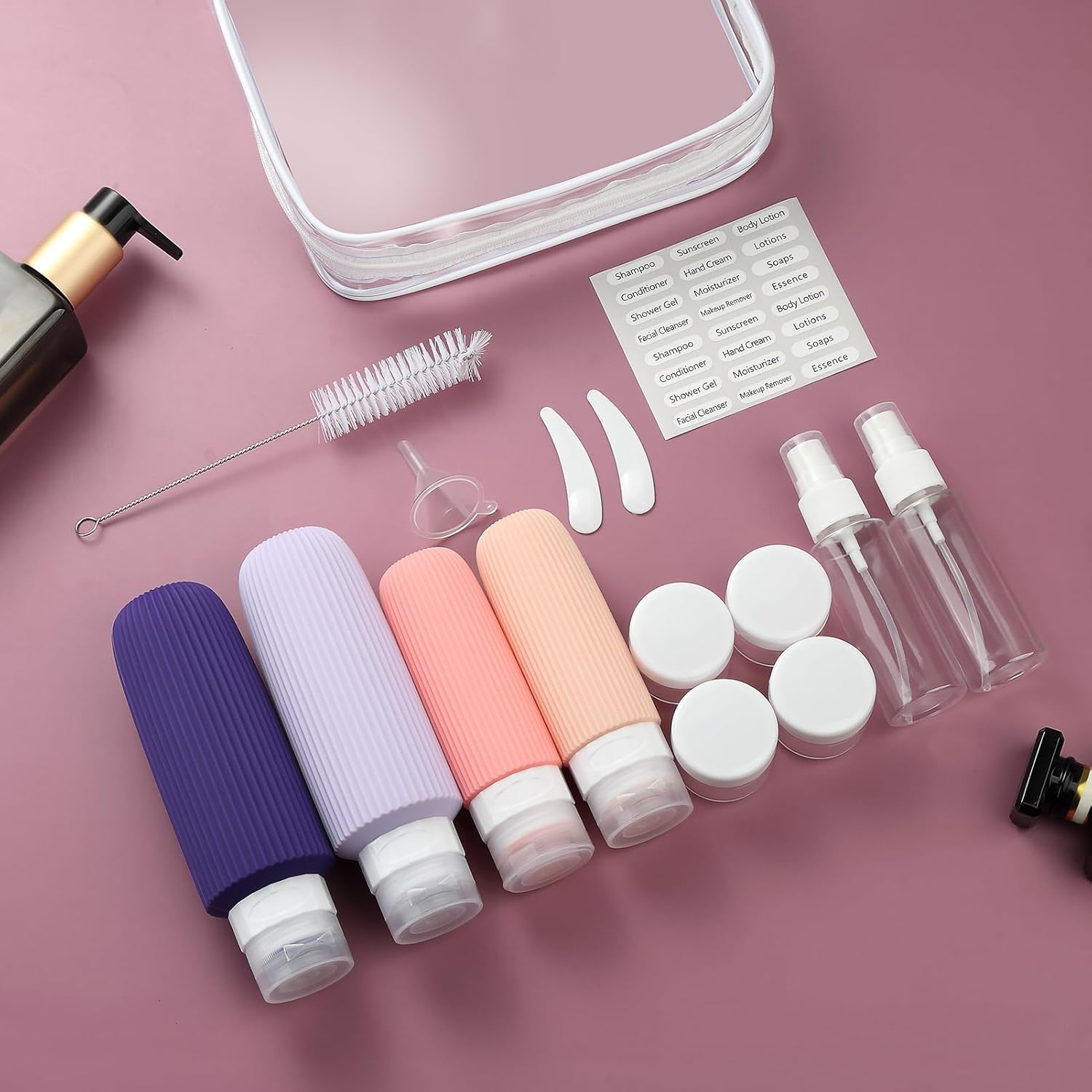 16 Pack Travel Bottles for Toiletries, Large 6oz Silicone Travel Containers with No-Drip Valve and Wide Opening