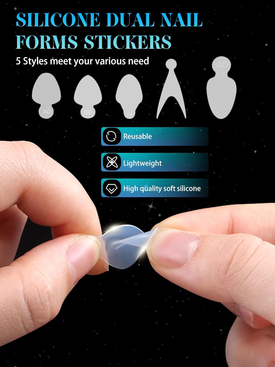 • 【Dual Nail Forms Set】288PCS nail molds and 72pcs/6 sheets duet system dual form stickers that are used together with poly nail tips, which can quickly create French nail art extension design, DIY your desired mixed color and pattern nail tips.
