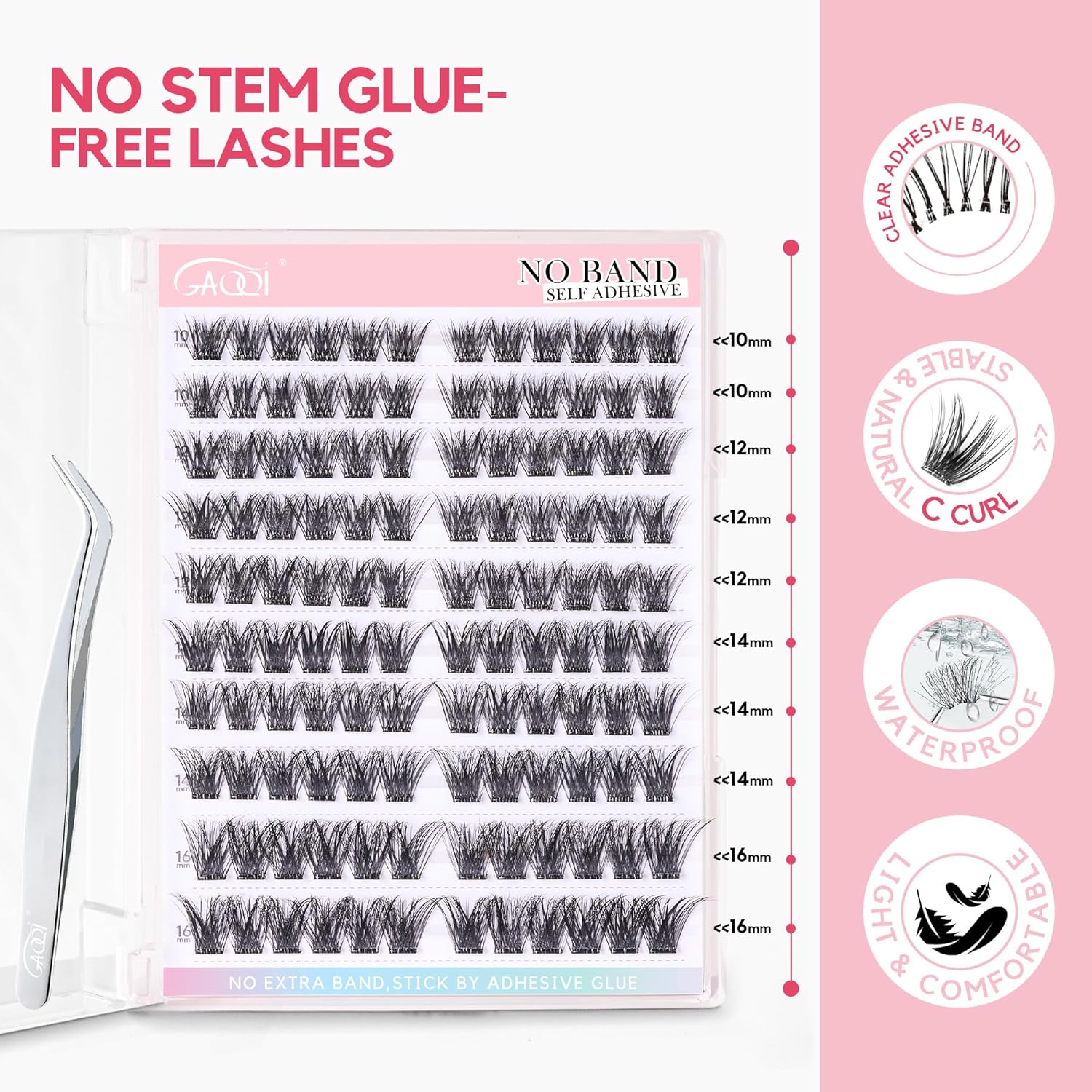 • 【No Band! New Tech】These self-adhesive lash clusters feature the latest stemless technology. Without an extra band, they adhere directly with adhesive glue, giving the appearance of clear-band.