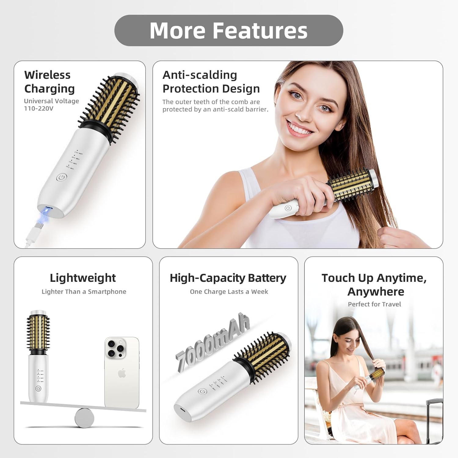 • 【Handbag Emergency? 5-Min Hair Rescue】 Caught in rain or facing frizz before a meeting? A cordless hair brush heats in 60 seconds to smooth hair and restore style in under 5 minutes. Engineered as a secret weapon for real-life hair emergencies, it provides ultimate peace of mind when kept in a handbag.