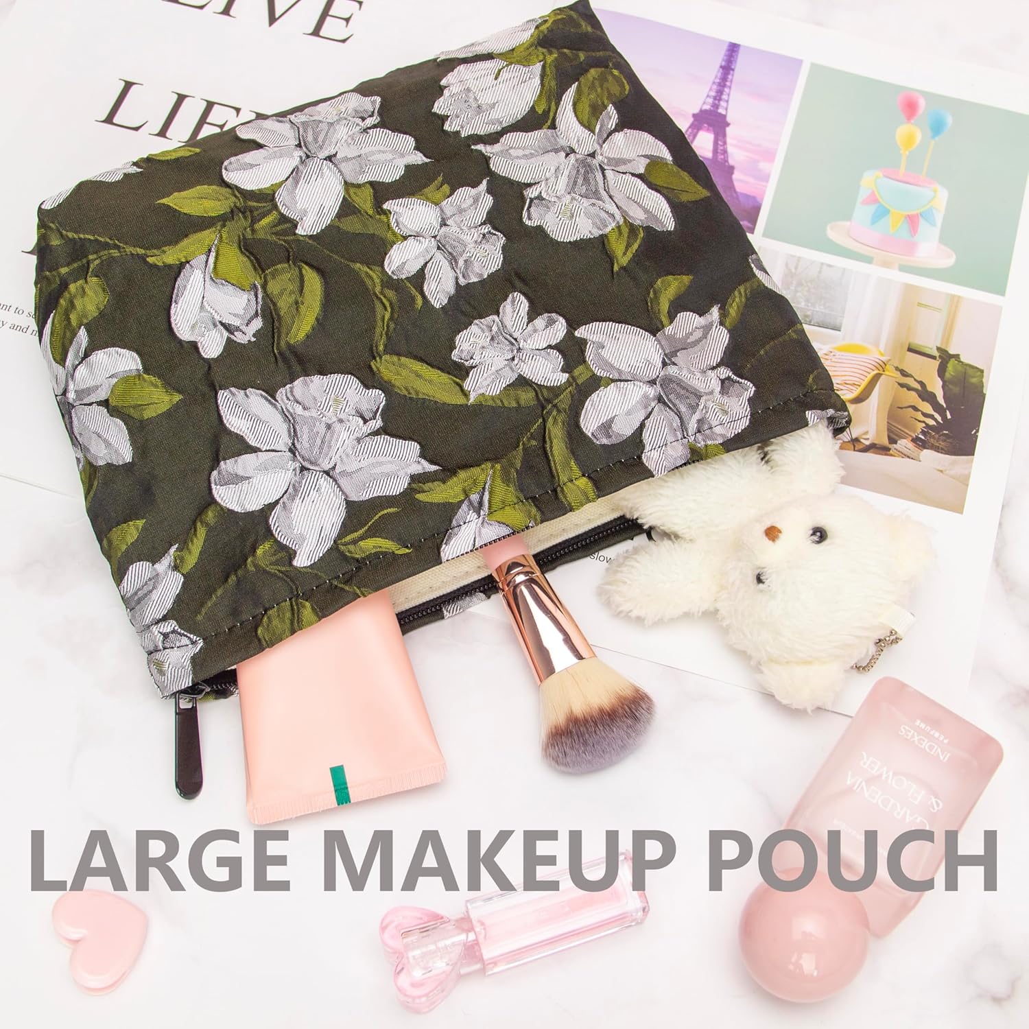 • Multi-Purpose:Use this sturdy pouch to easily pack and carry makeup,jewelry,beauty items,brushes,pencils,small electronic accessories,toiletries,essential oils,medcine,tools or other travel essentials.This cosmetic pouch is the perfect balance between funchtion and style.